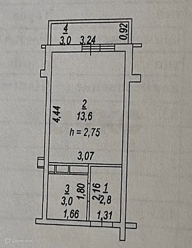 Балкон, лоджия 1 балкон