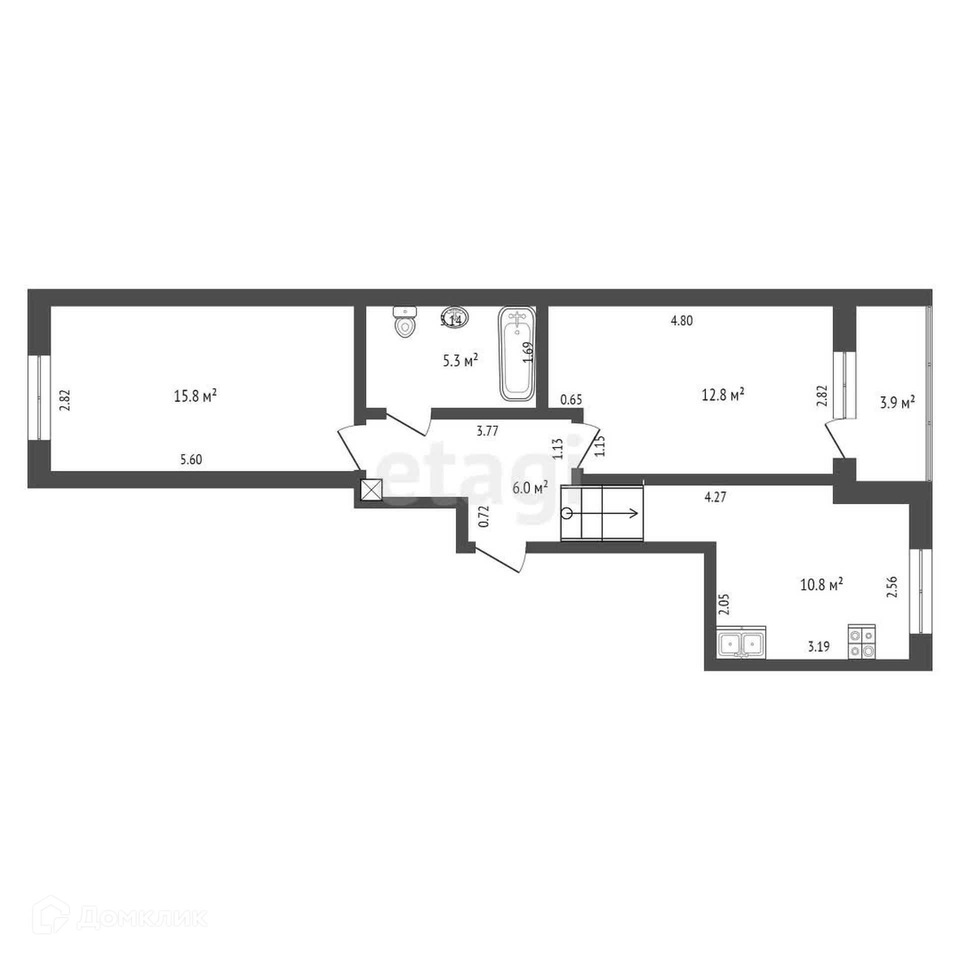 Общая площадь 52.7 м2