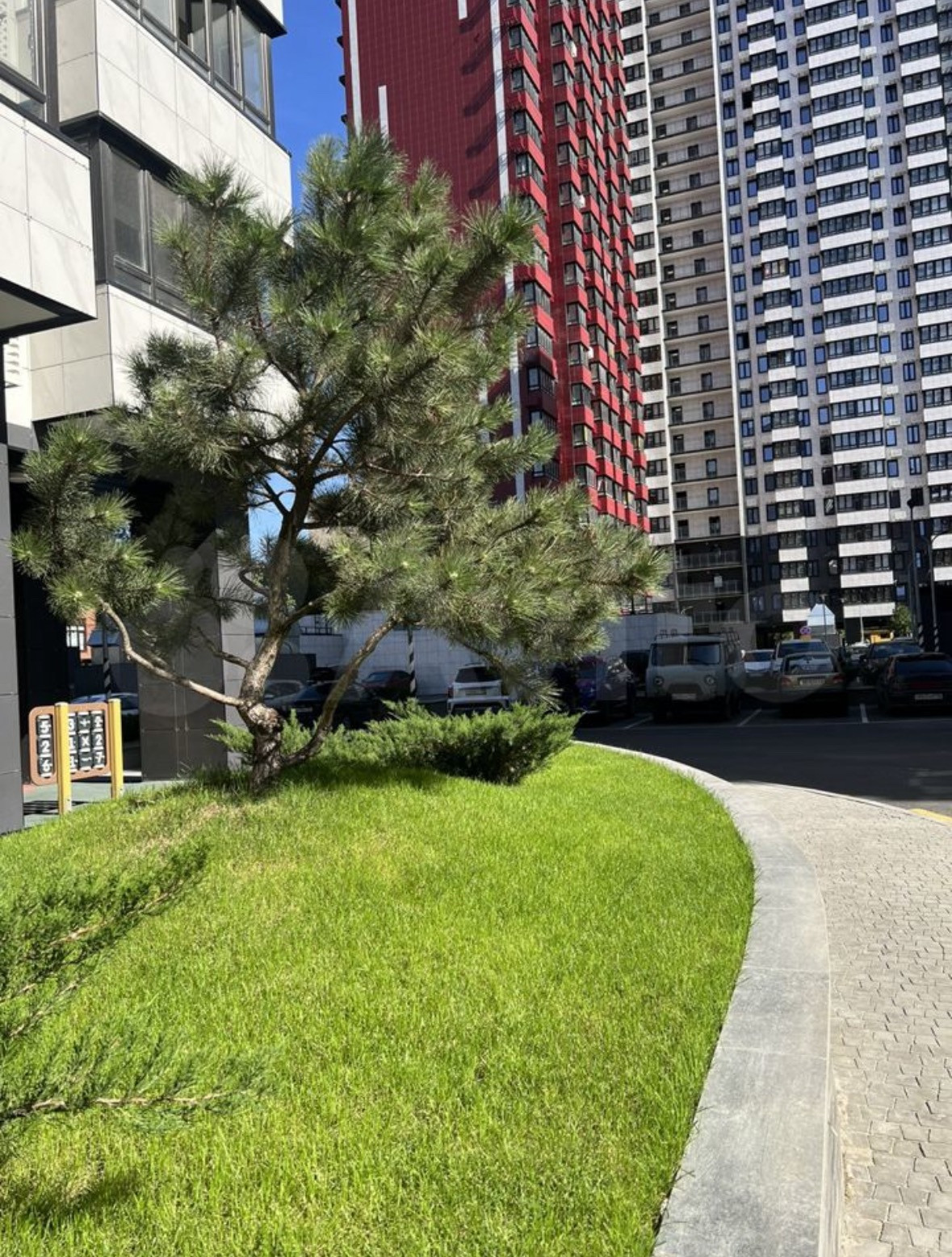 Благоустройство прилегающей территории включает в себя организацию детских игровых и спортивных площадок, гостевой автостоянки, а также озеленение.