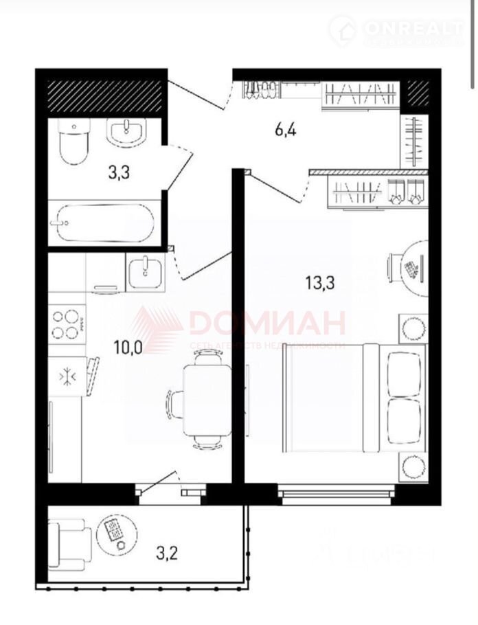 Общая площадь 36 м2