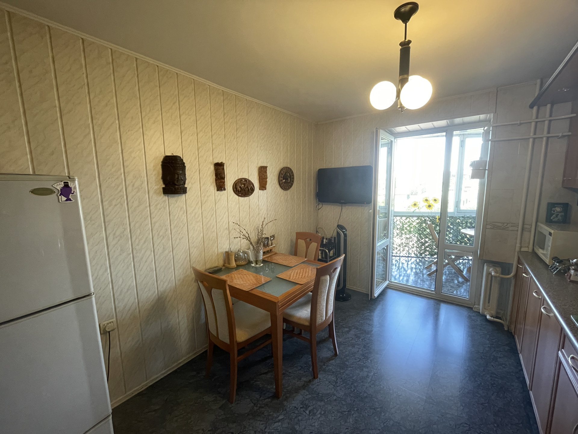 В квартире выполнен качественный евроремонт, который добавляет ей особого шарма и уюта. Жилая площадь составляет 45 квадратных метров, а кухня — 12 квадратных метров, что позволяет свободно разместить всю необходимую мебель и технику. Кроме того, в квартире имеется три балкона, откуда открывается прекрасный вид на двор.