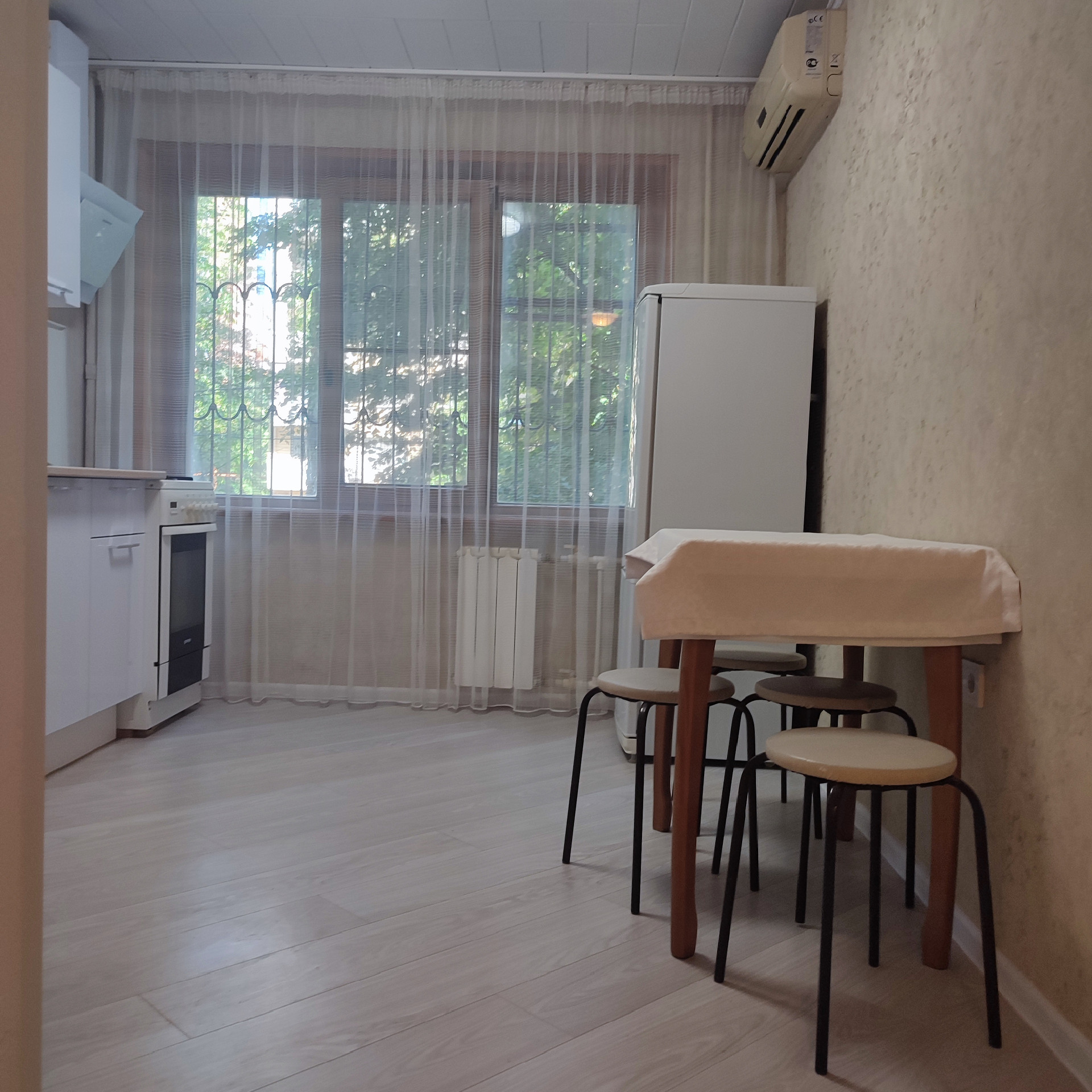 Продается отличная квартира с ремонтом в светлых тонах. Окна в тихий двор. В подъезде сделан ремонт. В квартире новая проводка.  Новая кухня. Очень вместительная  прихожая, двери из натурального дерева. В спальне вместительный шкаф.  Балкон застеклен. Остается два сплита, мебель. Лучшая локация города. Рядом детский сад, школа, кафе, магазины, Театральная площадь, парк Революции