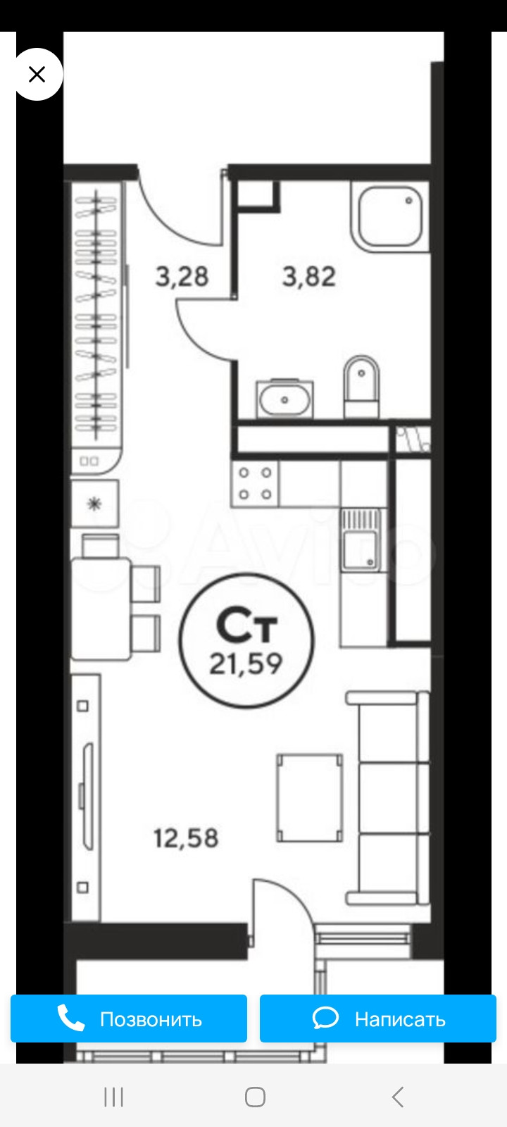 Общая площадь 21 м2