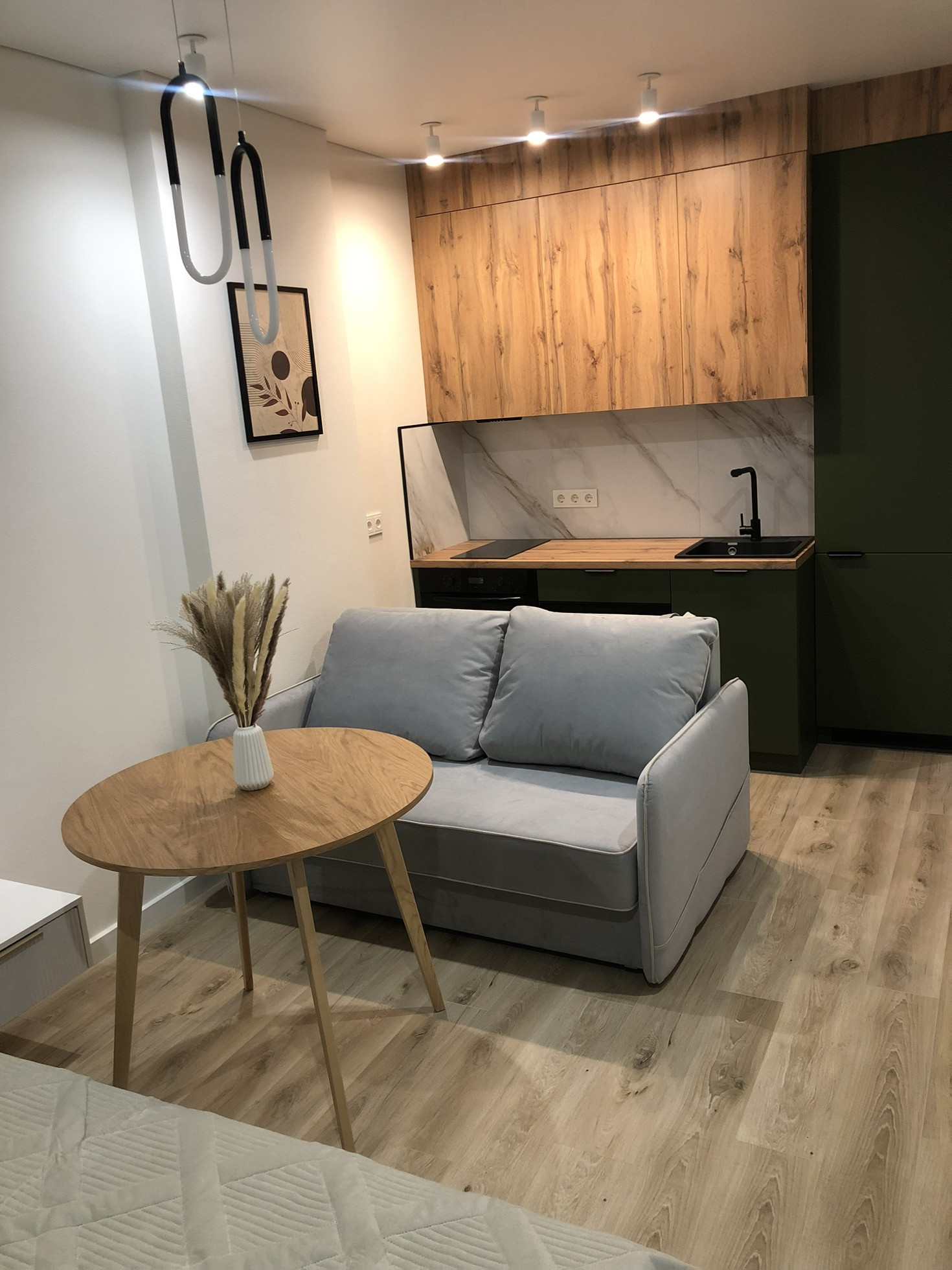 Продаю студию с дорогим дизайнерским ремонтом и техникой, делала для себя, а не для продажи, но жизненные планы изменились. Дорогой теневой потолок, на полу кварцвиниловый ламинат (не боится затопления), противоударный плинтус. Стены окрашены. За кроватью декоративное панно ручной работы. Студия укомплектована встроенным холодильником, встроенной свч, варочной панелью Куперсберг и духовым шкафом, стиральной машиной Индезит. В ванной выполнена гидроизоляция абсолютно всех стен, а не только мокрой зоны.