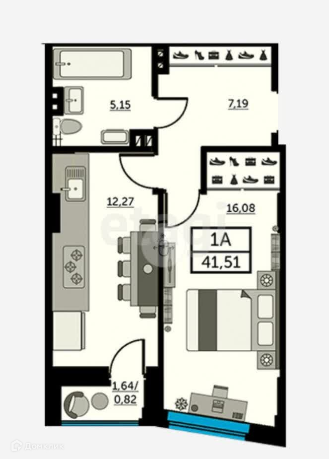 Общая площадь 41.2 м2