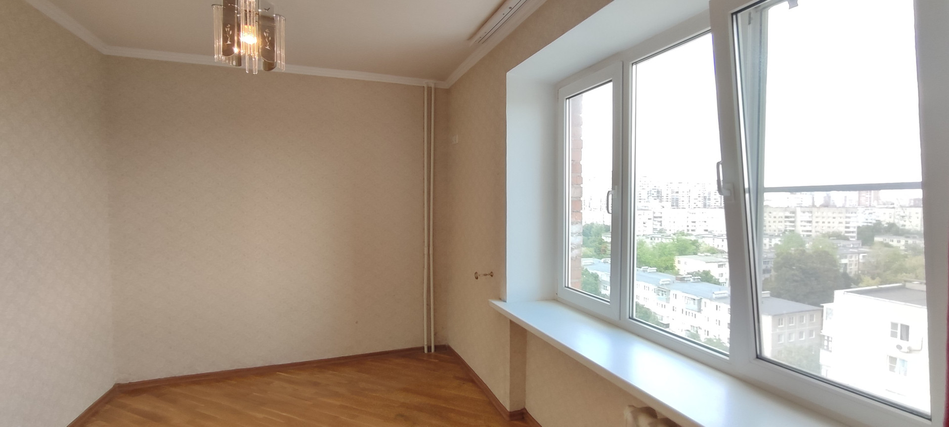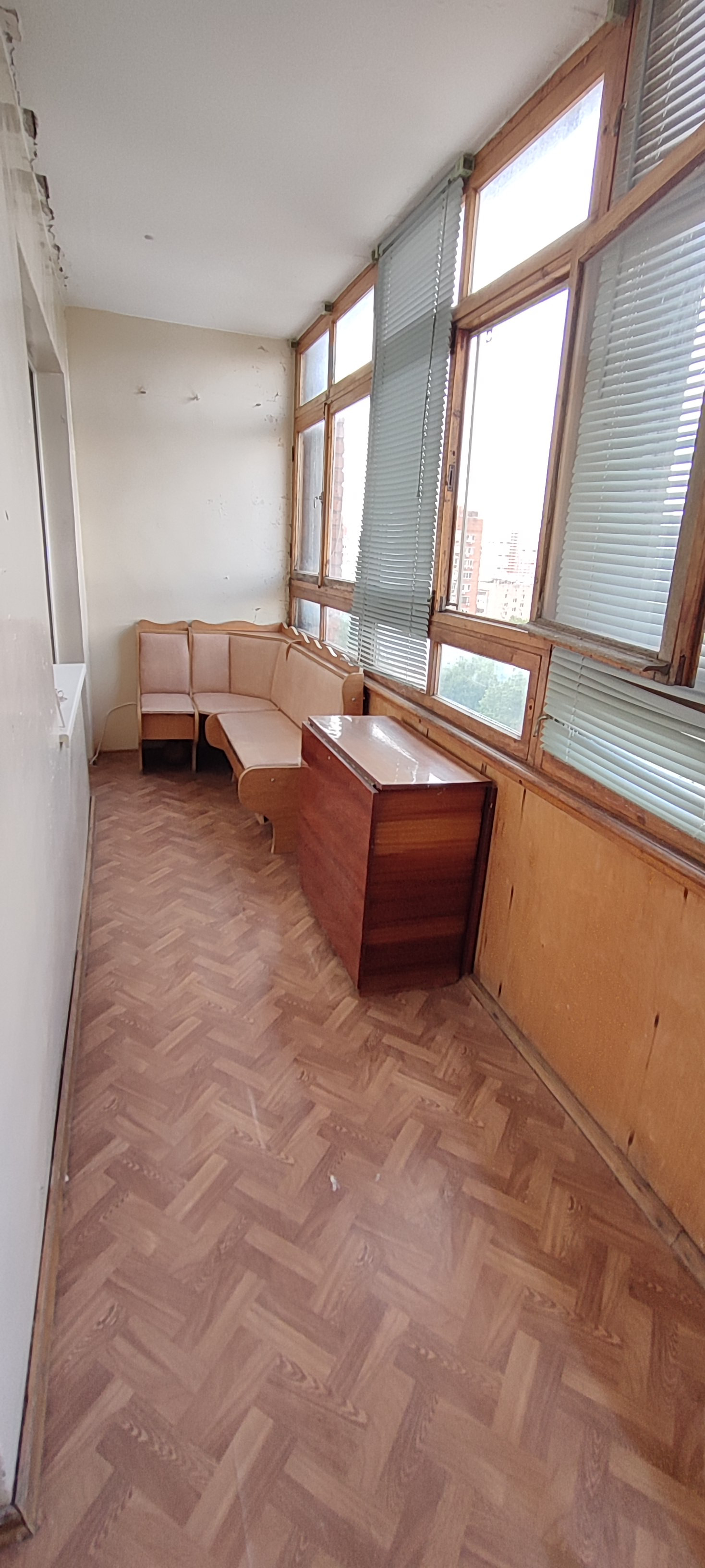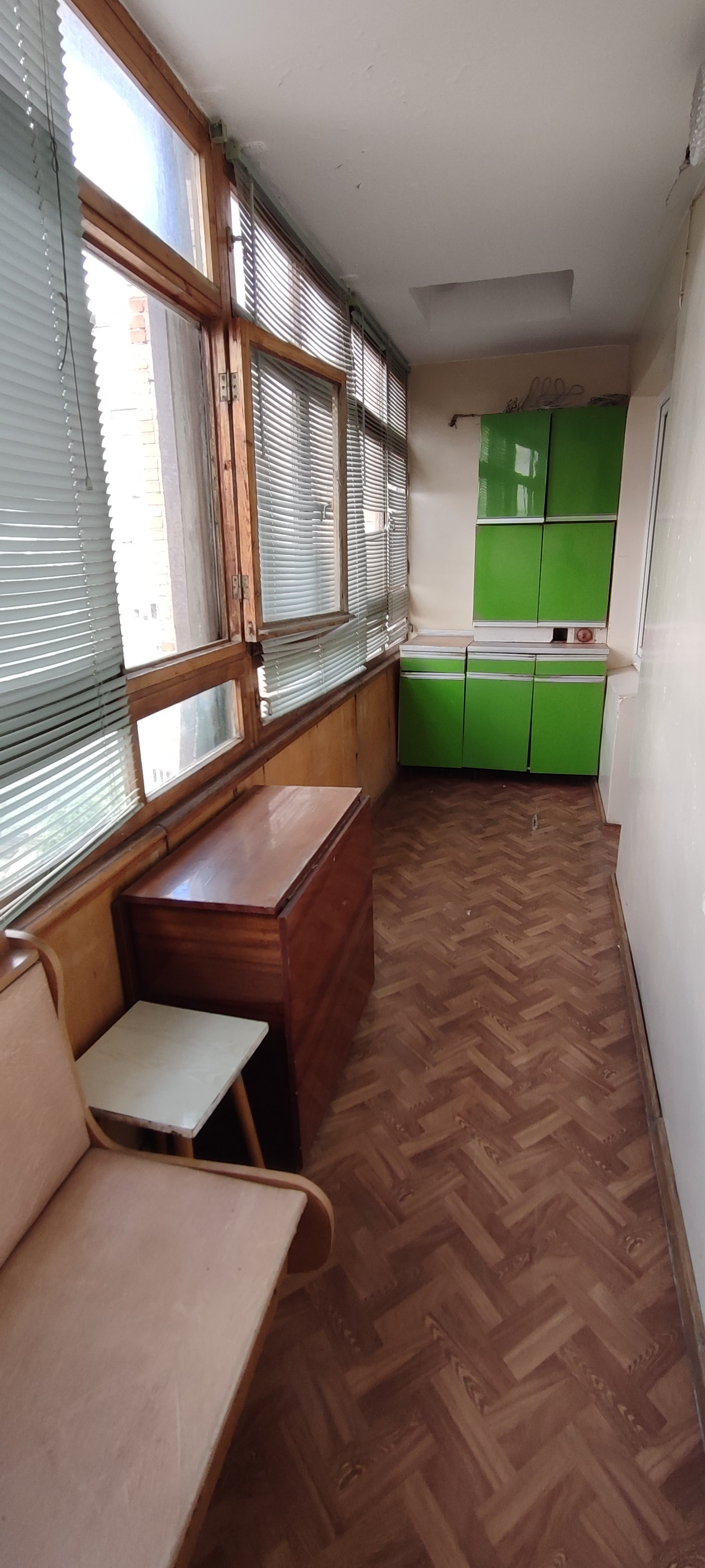 Две спальни: 10 кв и 12 м2, и зал 18,8 м2. Зал и кухня соединены большим балконом 7,2 м2, с прекрасным видом на зеленую зону северного жилого массива.
