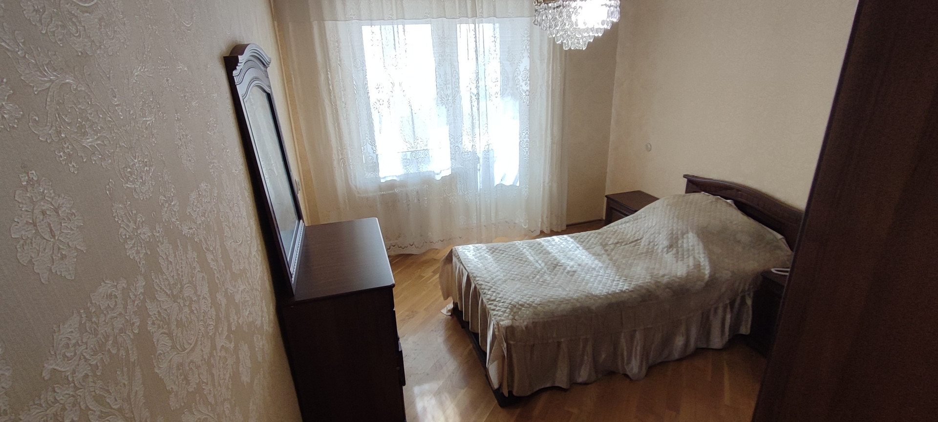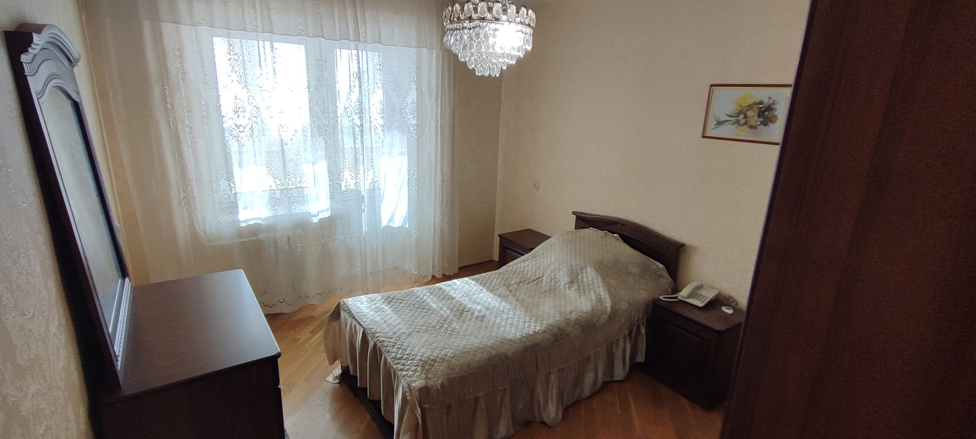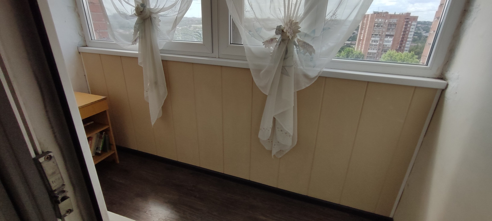 Две спальни: 10 кв и 12 м2, и зал 18,8 м2. Зал и кухня соединены большим балконом 7,2 м2, с прекрасным видом на зеленую зону северного жилого массива.