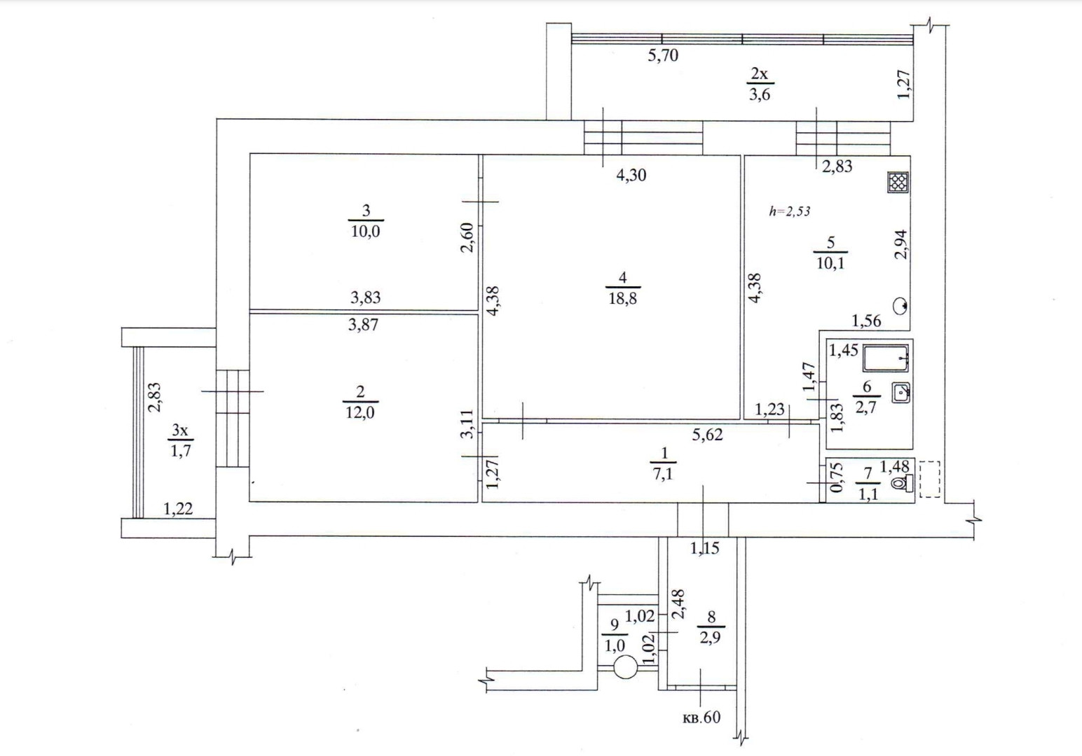 Высота потолков 2.7 м