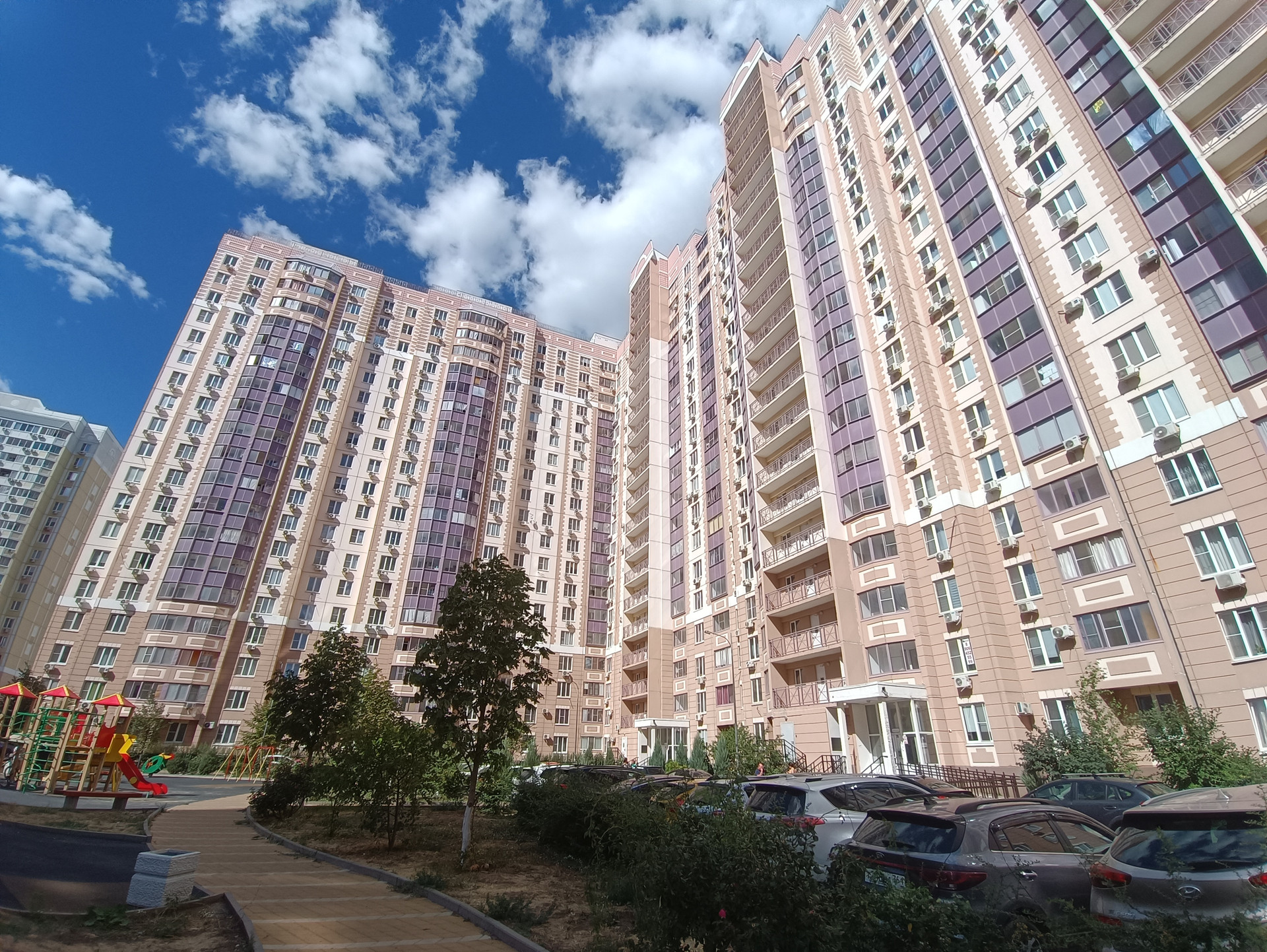 Во дворе большая детская площадка.