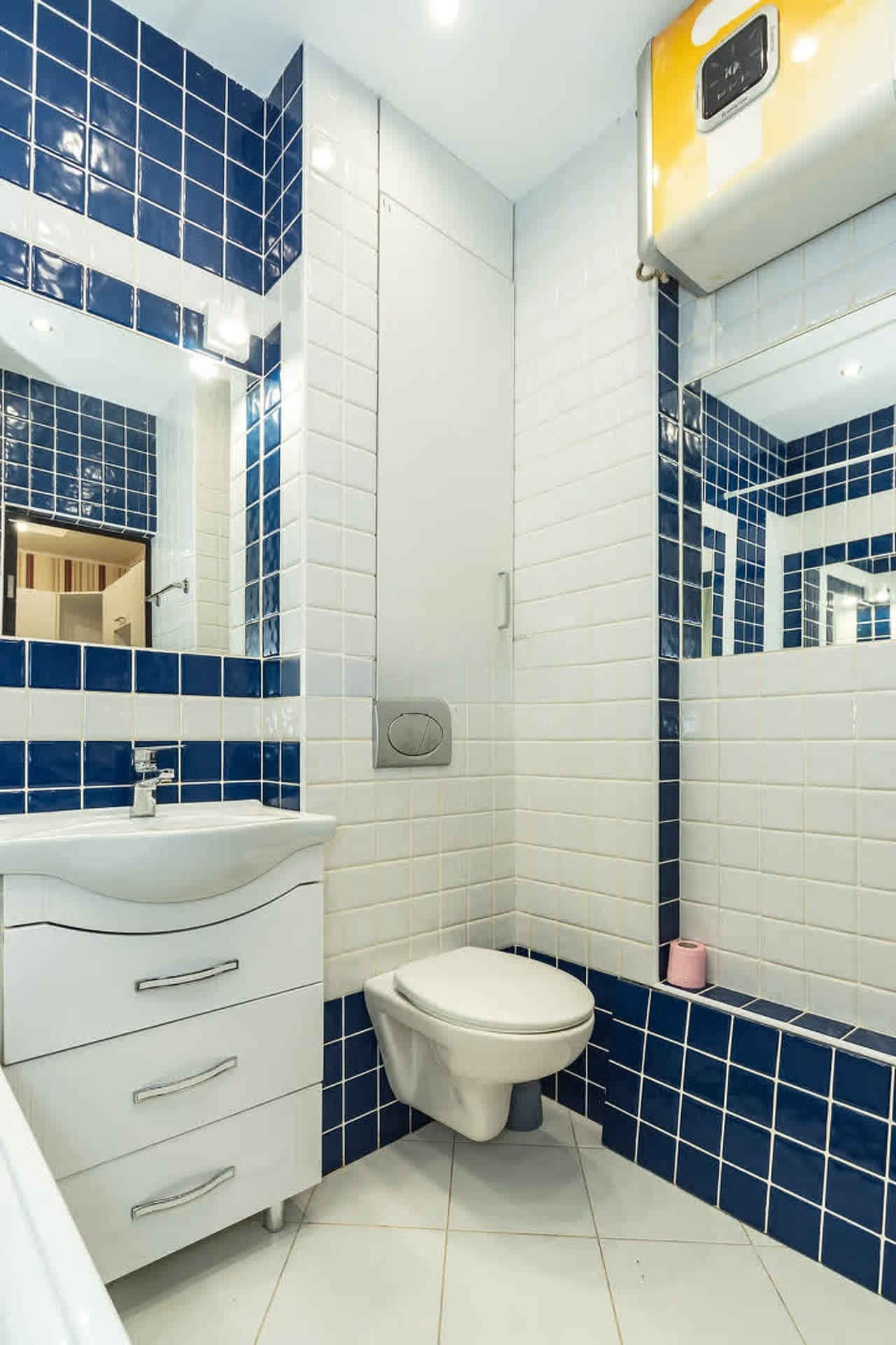 В санузле стоят гребенки (коллекторы), инсталляция и утеплена наружняя стена *