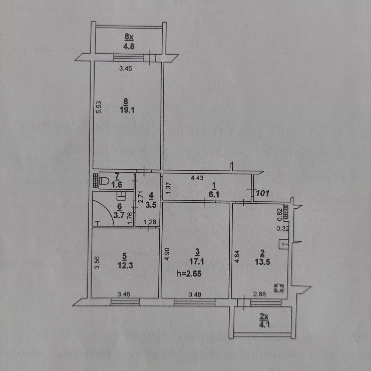 Высота потолков 2.7 м