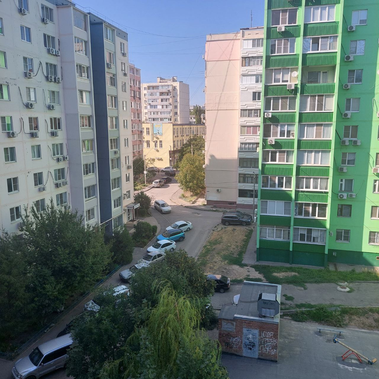 Вид из окна двор, улица
