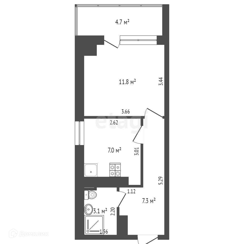 Балкон, лоджия 1 балкон