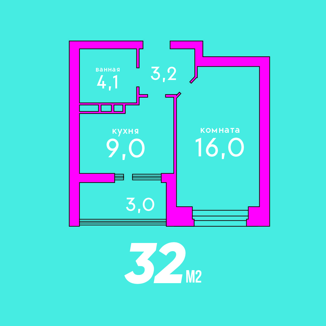 Общая площадь 32 м2