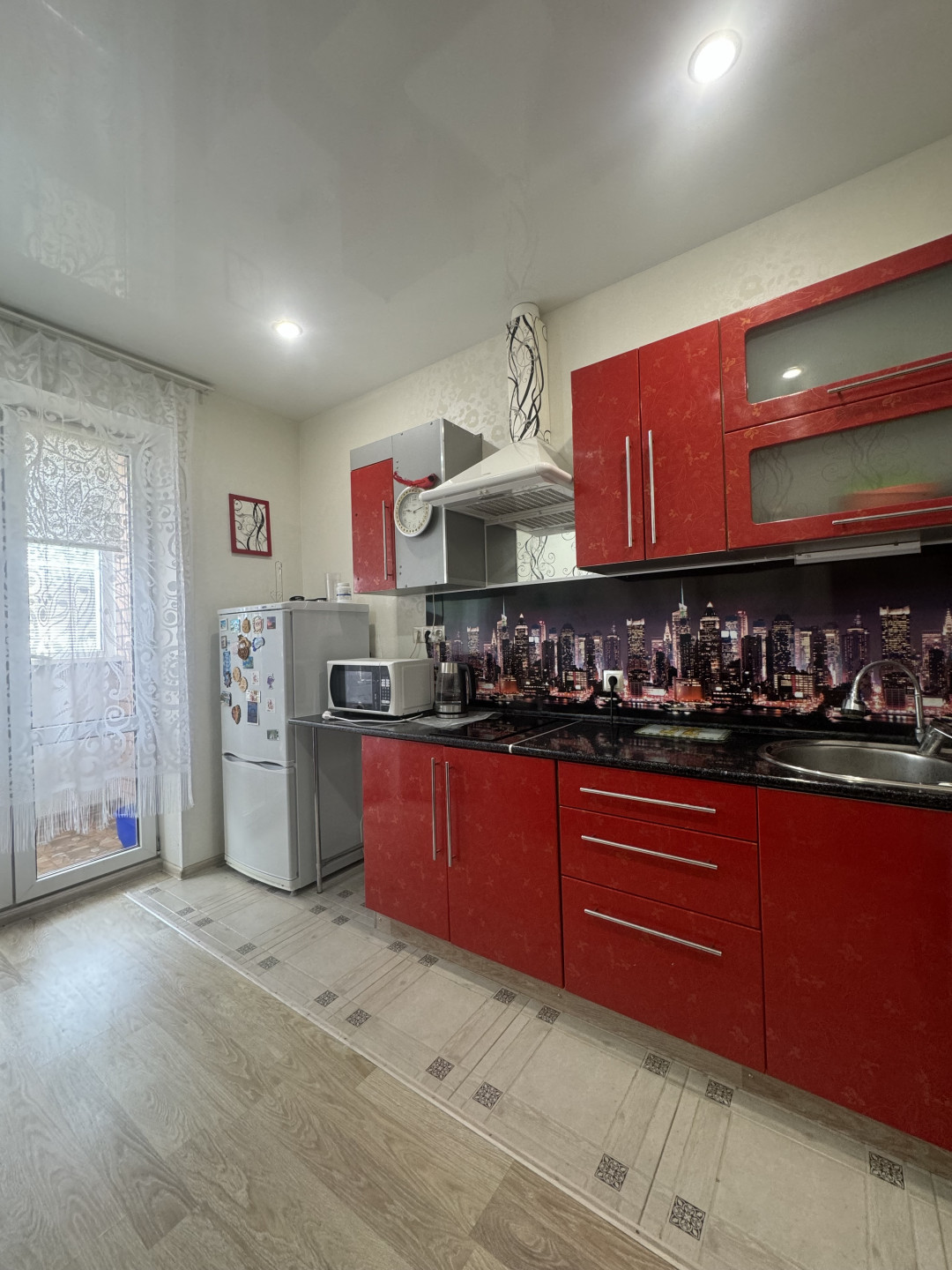 О КВАРТИРЕ Уютная квартира с потрясающим видом на город. Квартира с современным качественным ремонтом. Просторная прихожая с зеркальным шкафом-купе.Дизайнерская ванная комната с тёплым полом и водонагревателем. В квартире установлена Система Протечки Воды! Светлая и уютная куу с панорамной дверью, которая выходит на лоджию (тёплый пол) с Красивейшими восходами и закатами. Тихая спокойная спальня-зал. Квартира очень тёплая, все радиаторы с регулировкой температуры в квартире, почти весь отопительный сезон стоят на min. Мебель и техника почти вся остаётся Вам ( можно обговорить данный вопрос). Возможен Торг, реальному Покупателю.