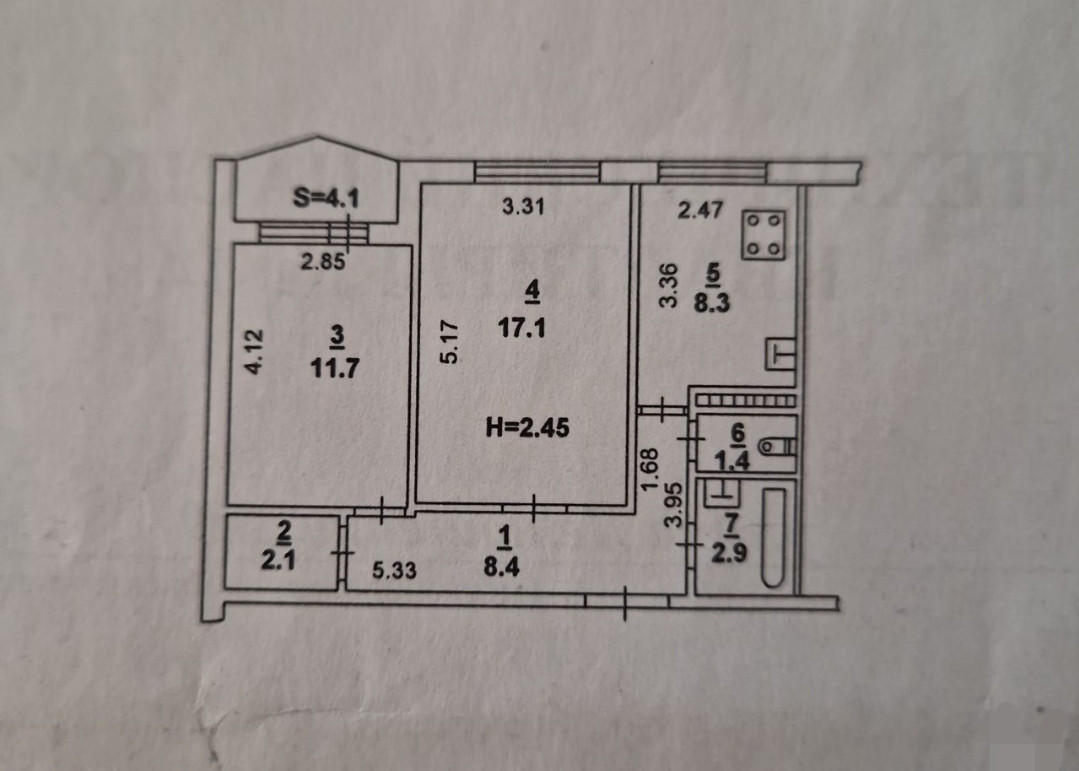 Балкон, лоджия 1 балкон