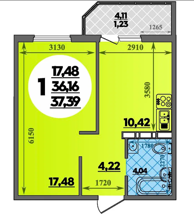 Общая площадь 37 м2