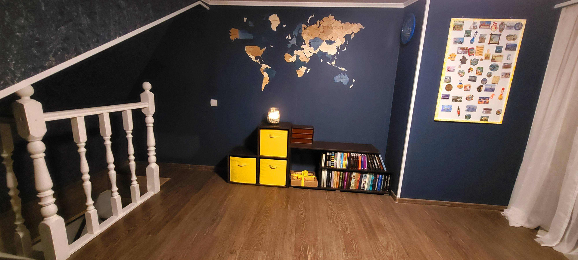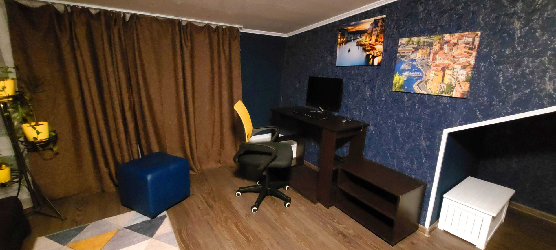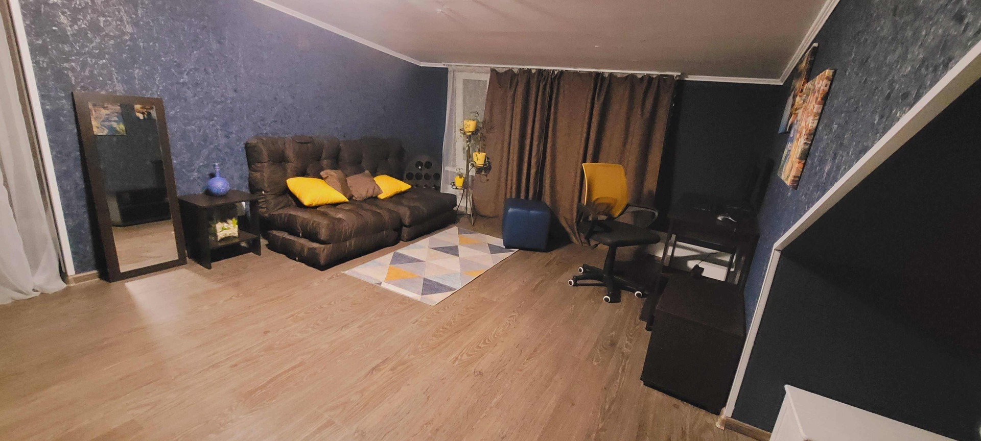 На втором этаже (мансарде, потолки 1.7-2м) зал-кабинет и уютная спальня.