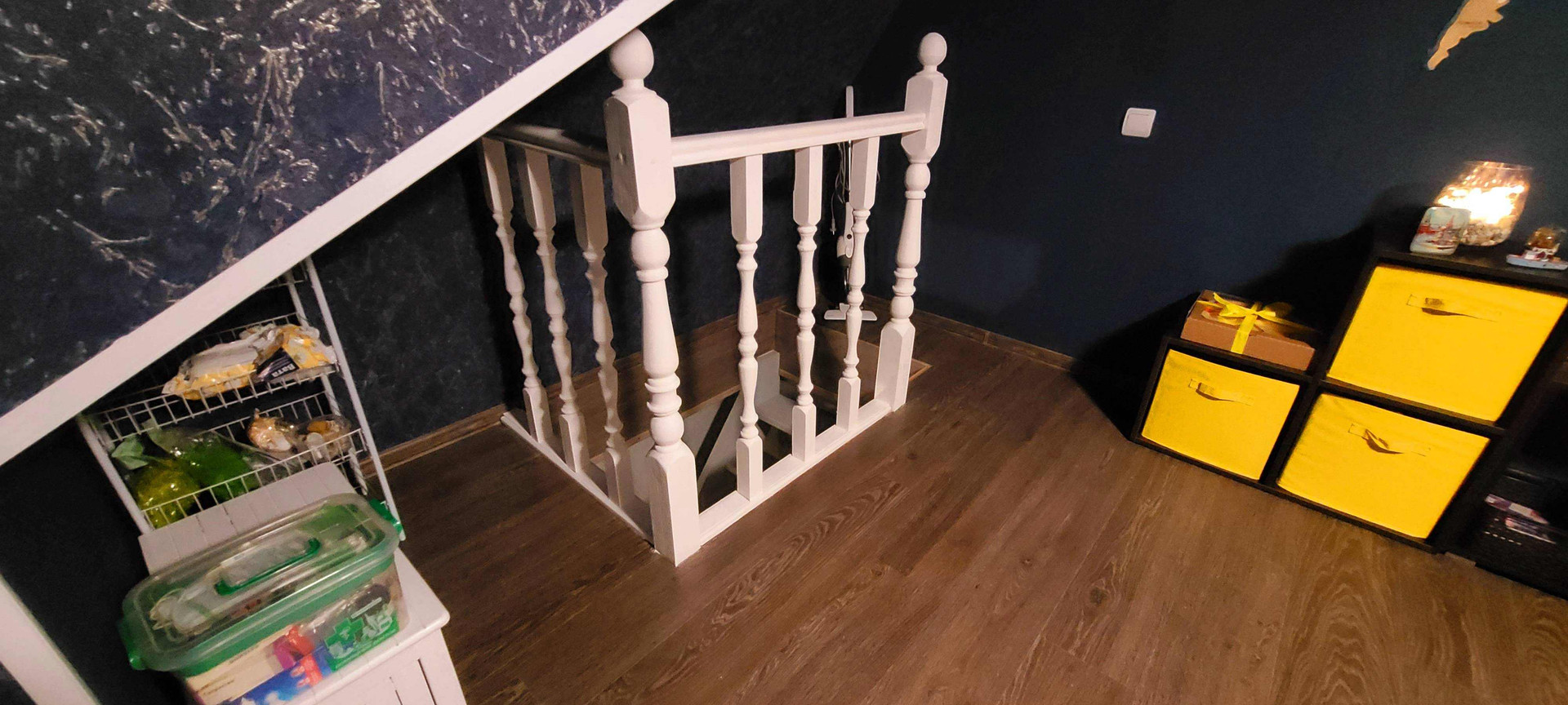 На первом этаже прихожая, совмещённый санузел, кухня-гостиная.
