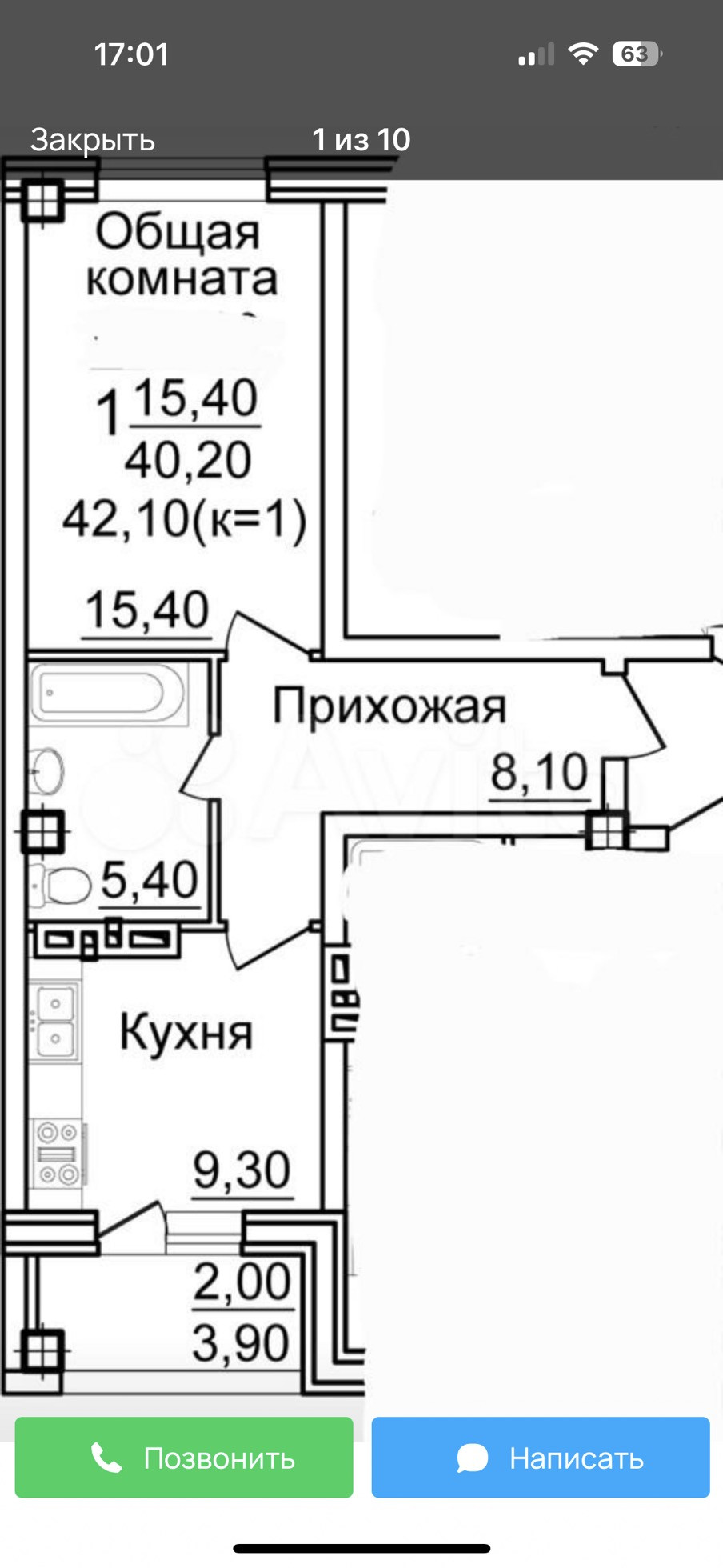 Общая площадь 42 м2