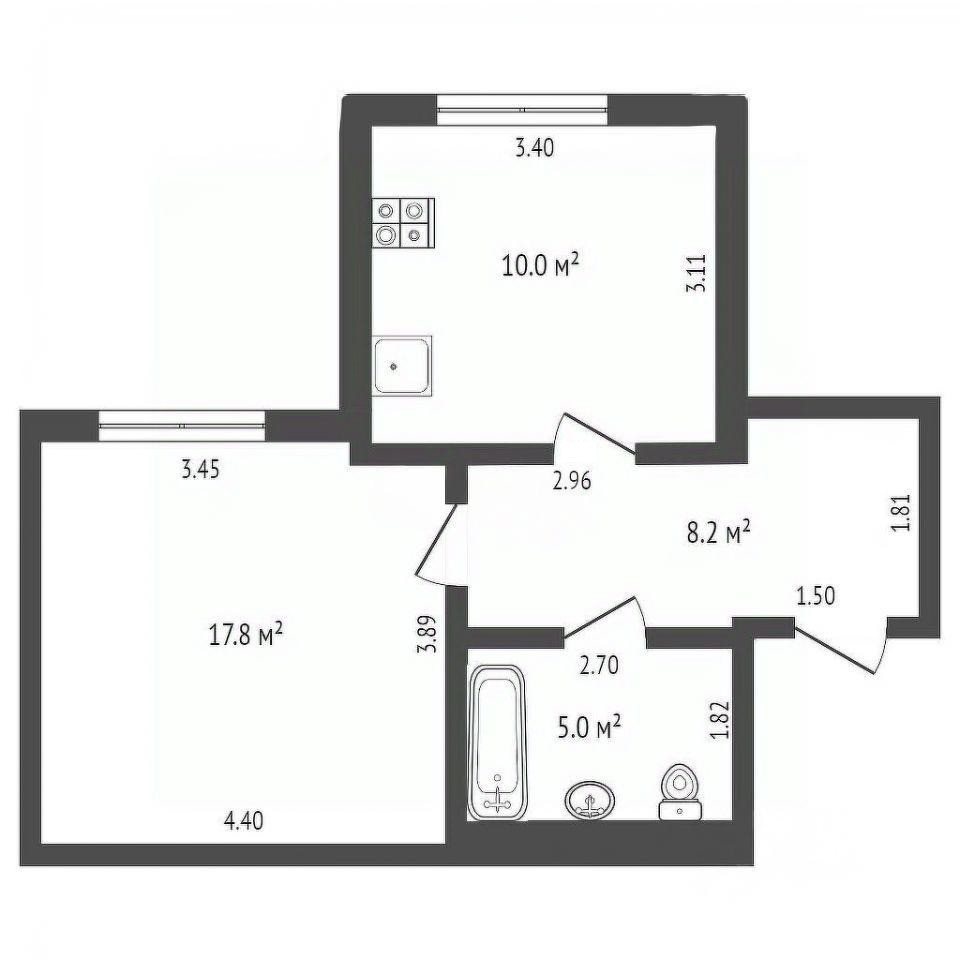 Жилая площадь 17.8 м2