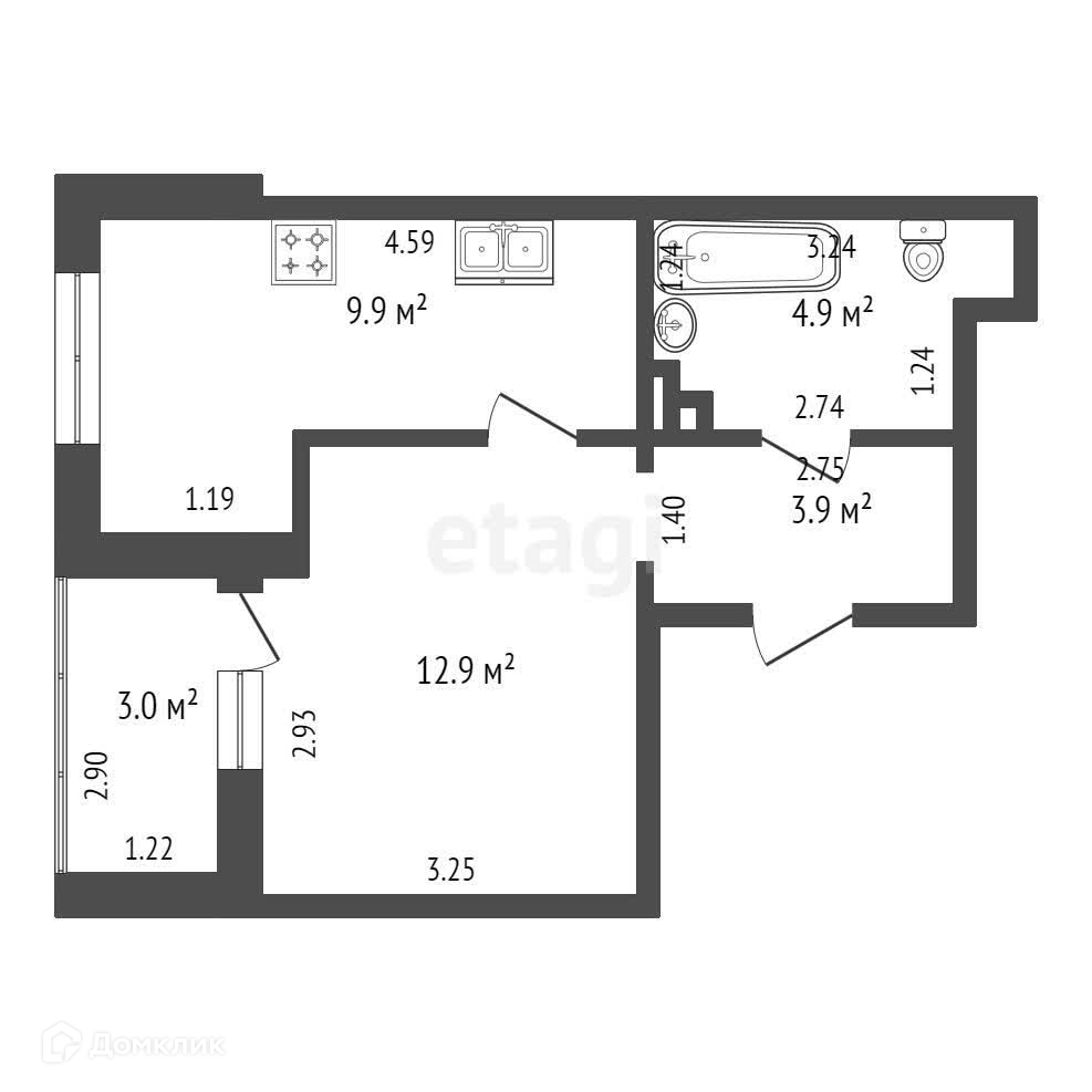 Общая площадь 33.2 м2