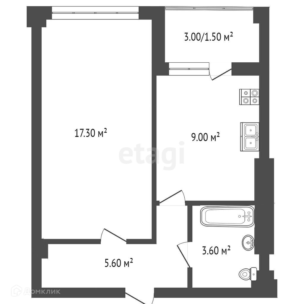 Балкон, лоджия 1 балкон