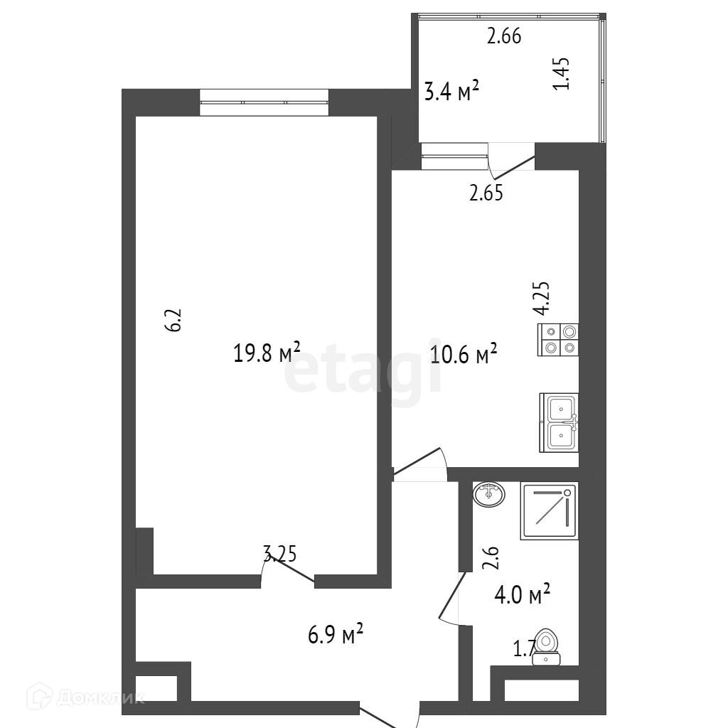 Общая площадь 42.2 м2