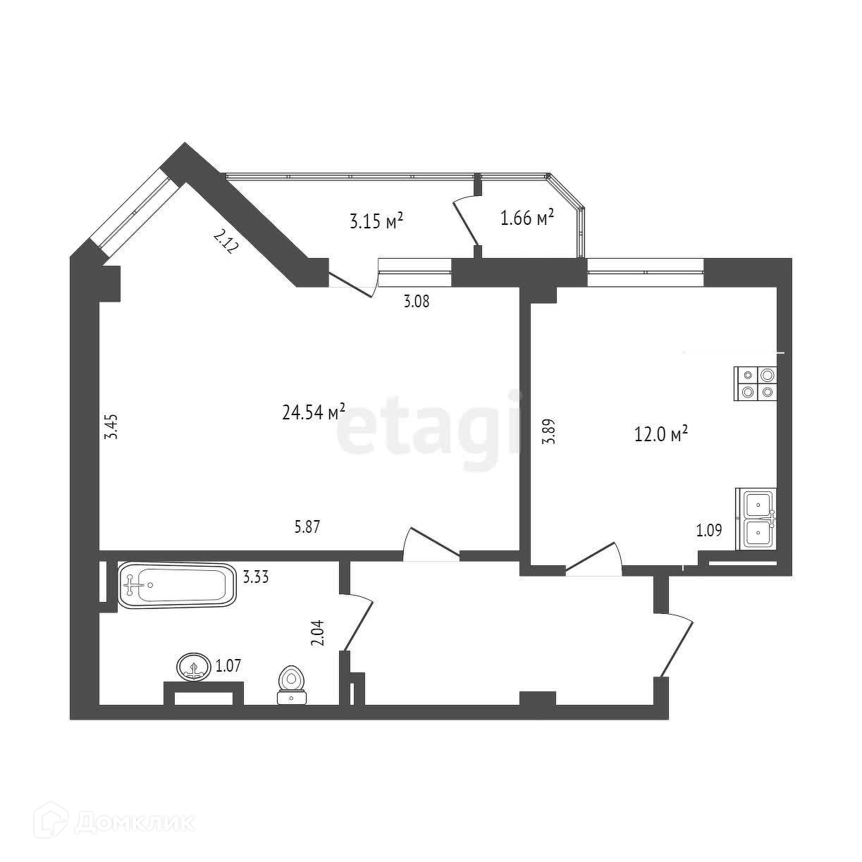 Жилая площадь 24.54 м2