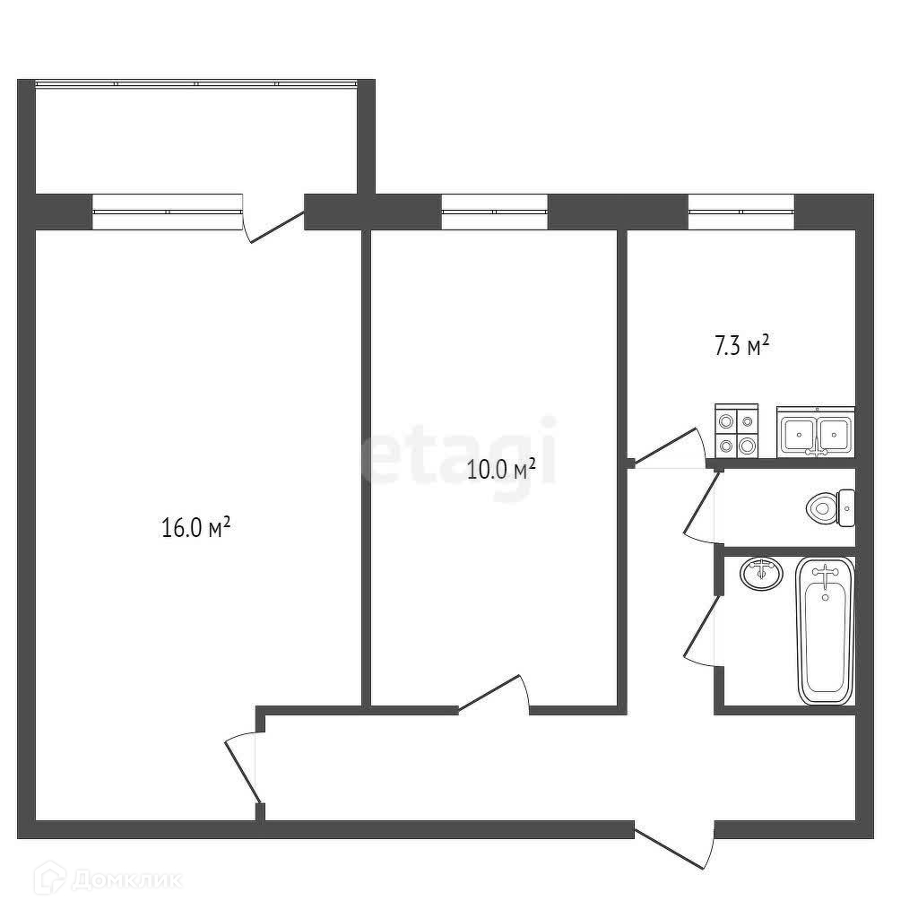 Общая площадь 43 м2