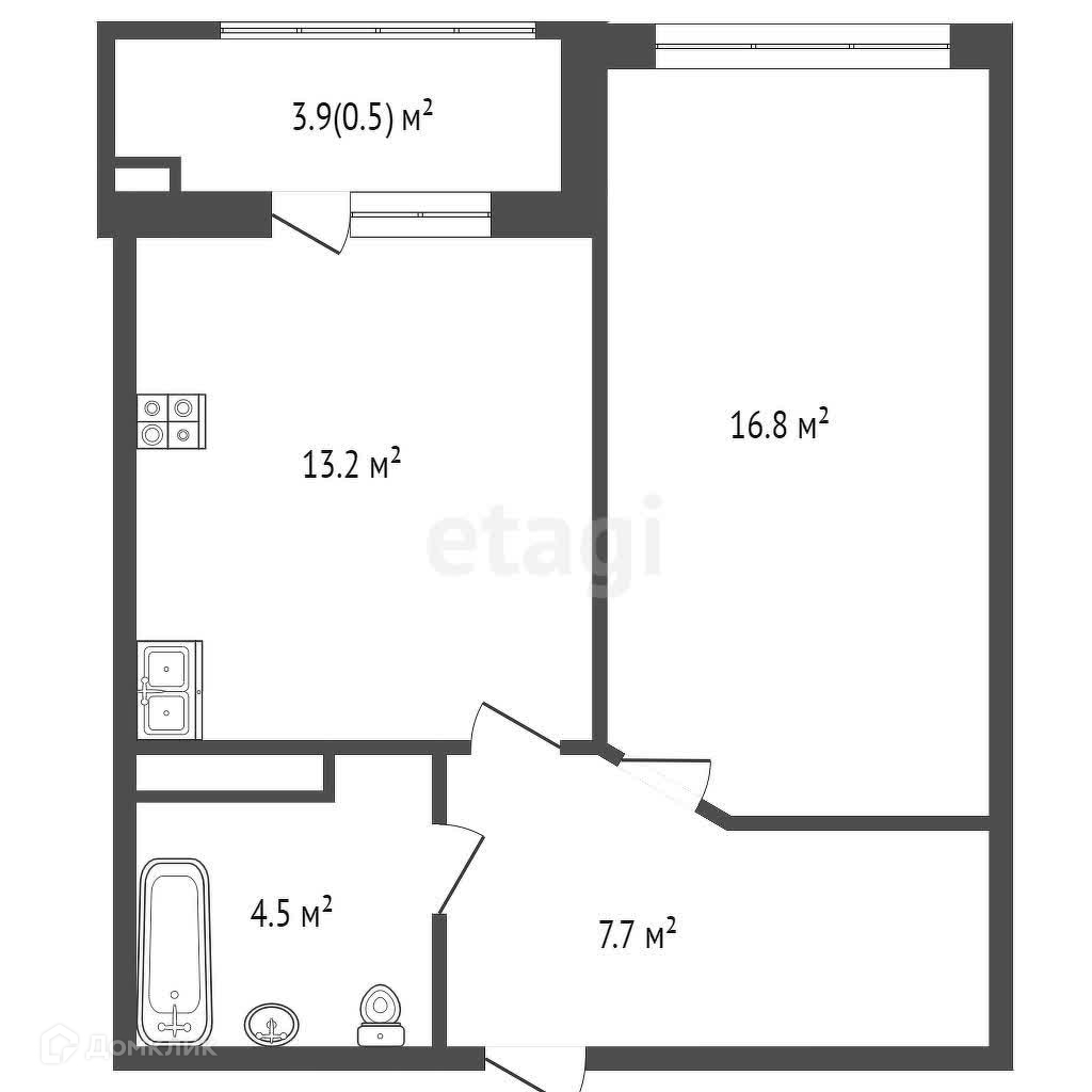 Общая площадь 41.2 м2