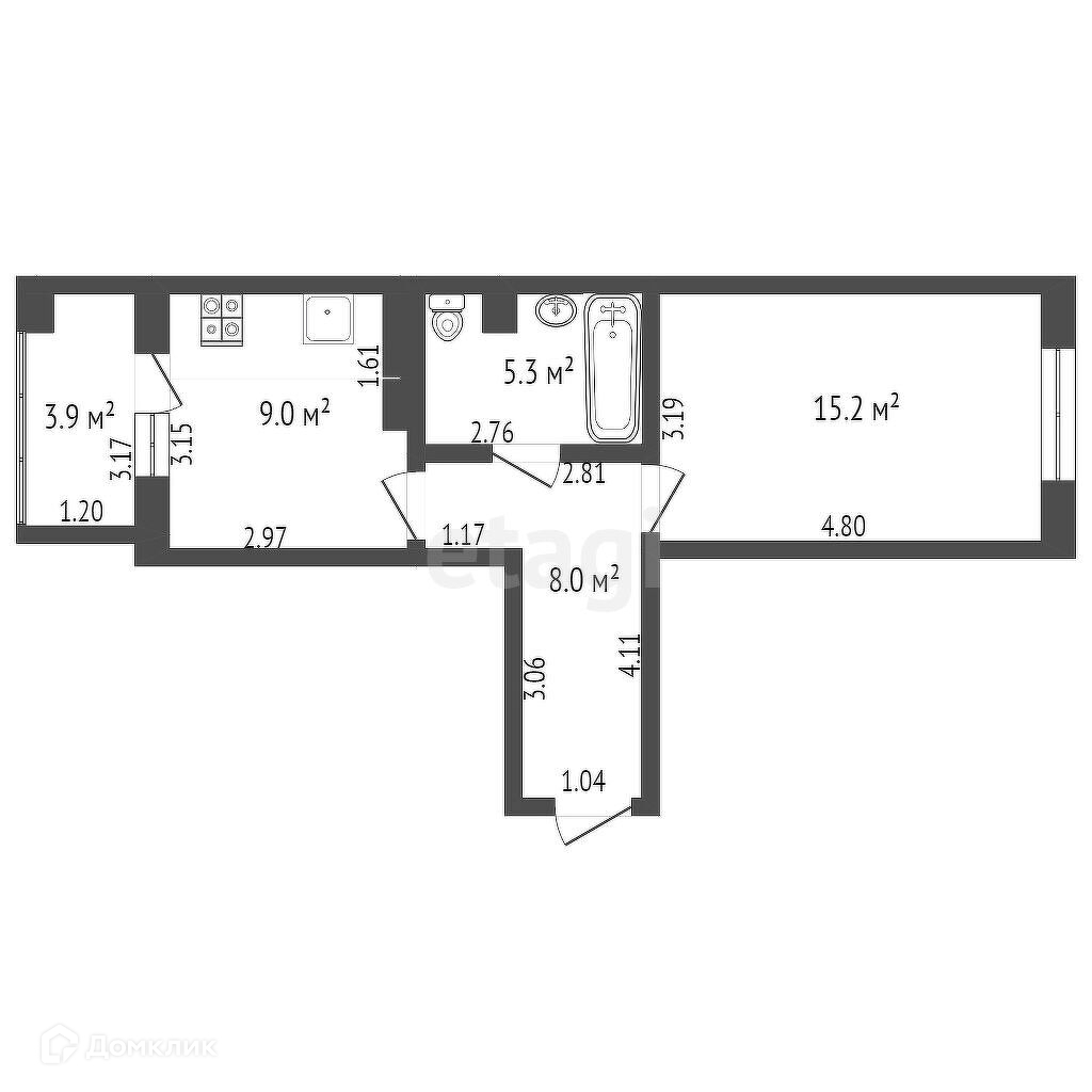 У квартиры планировка " Бабочка "