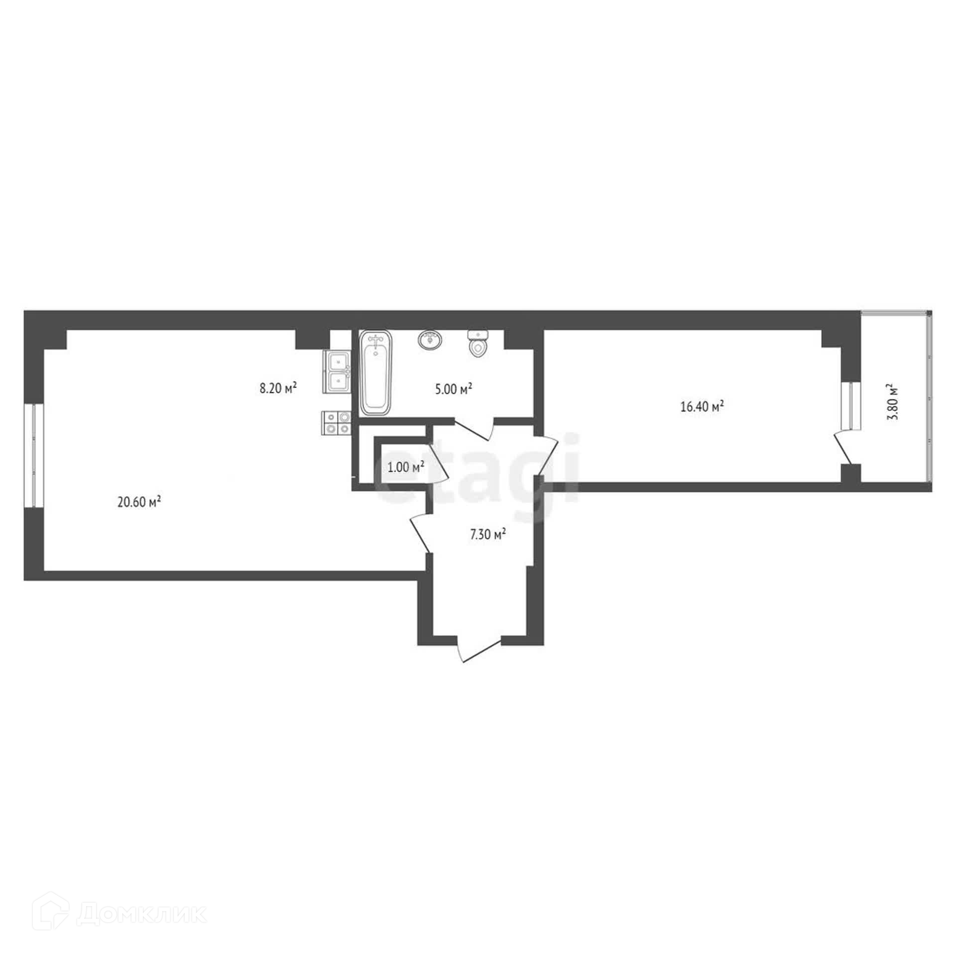 Общая площадь 58.4 м2