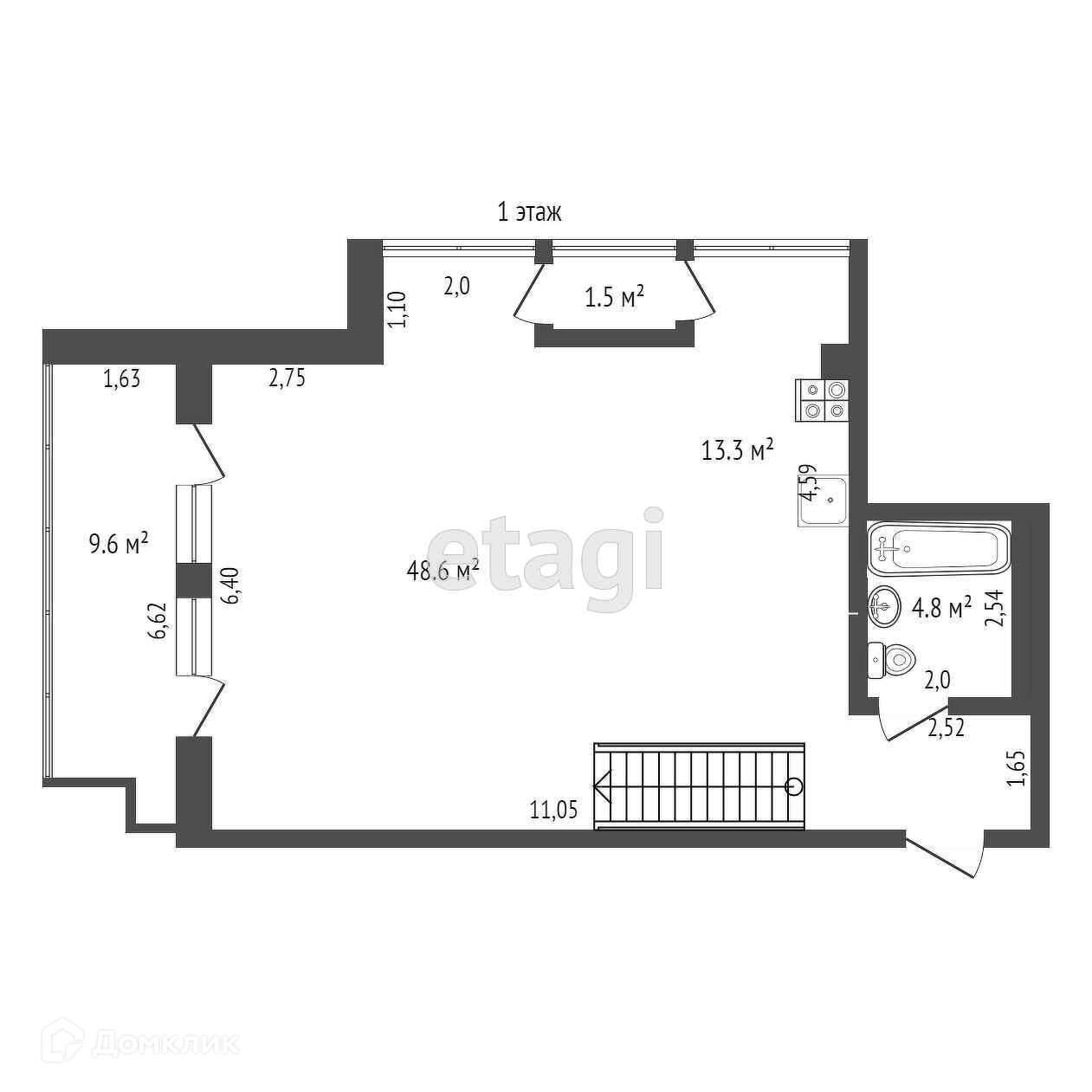 Балкон, лоджия 1 балкон