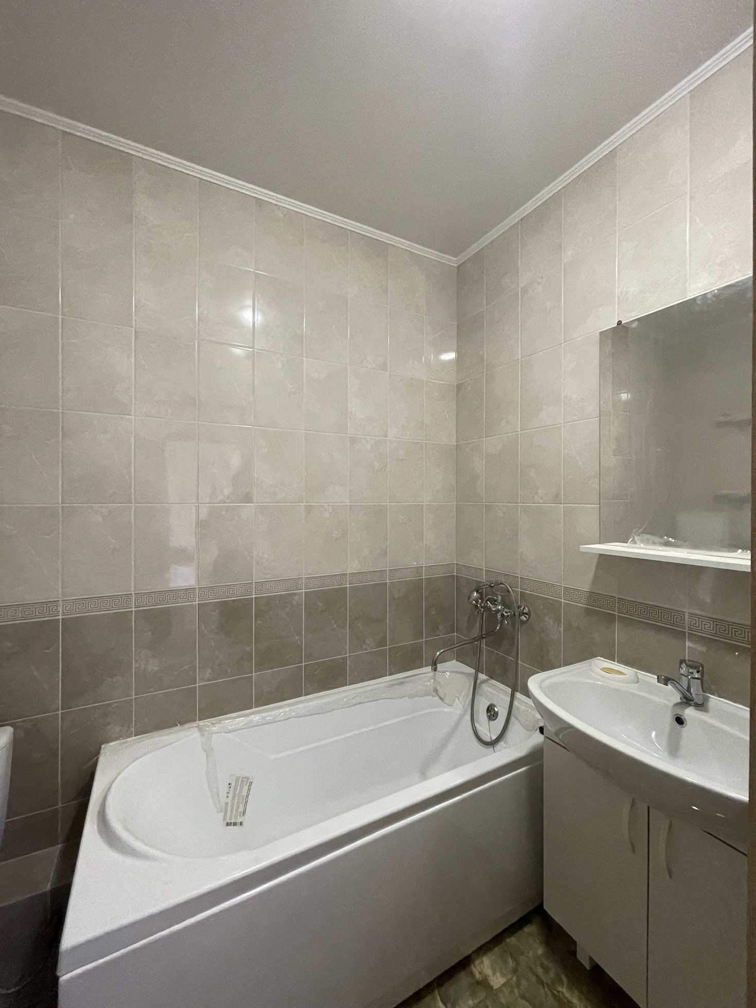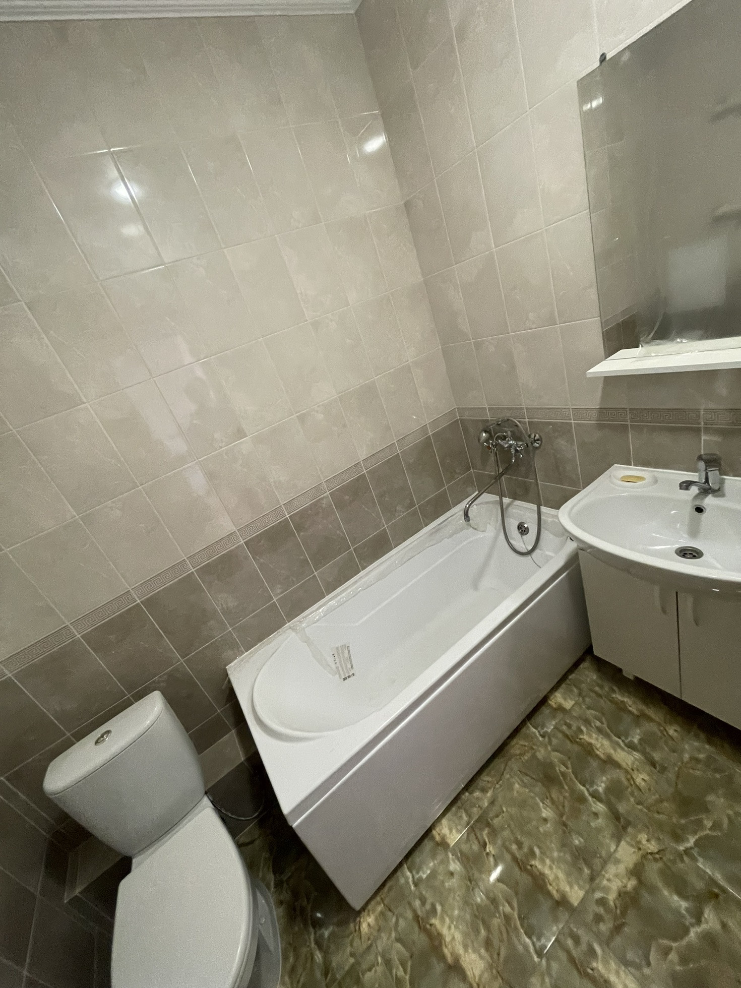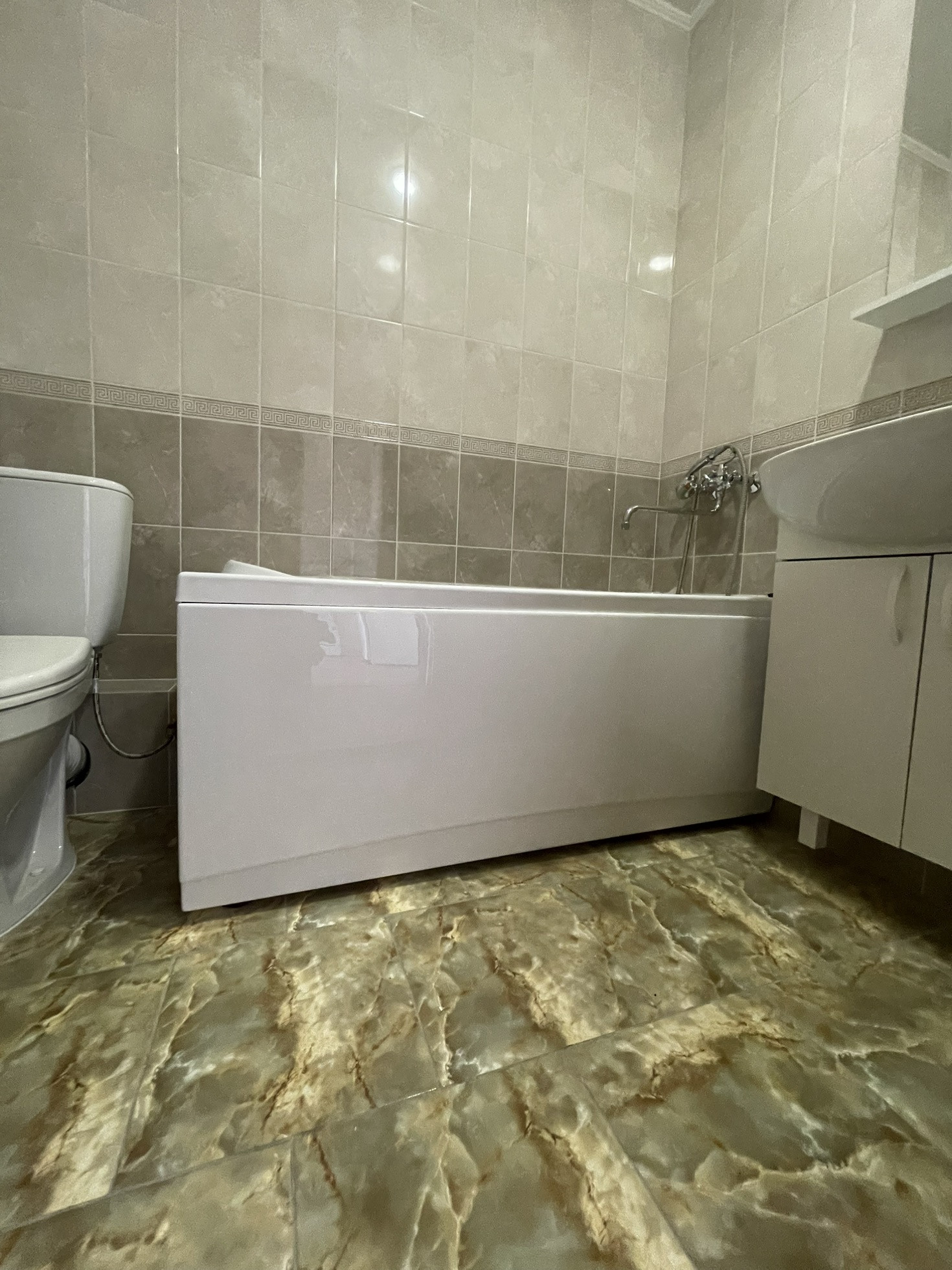В квартире переделан ремонт, новый линолеум, в ванной заменена сантехника, на стенах и полу плитка.