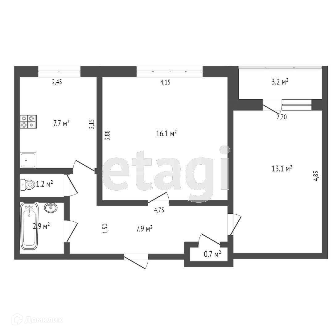 Общая площадь 53 м2