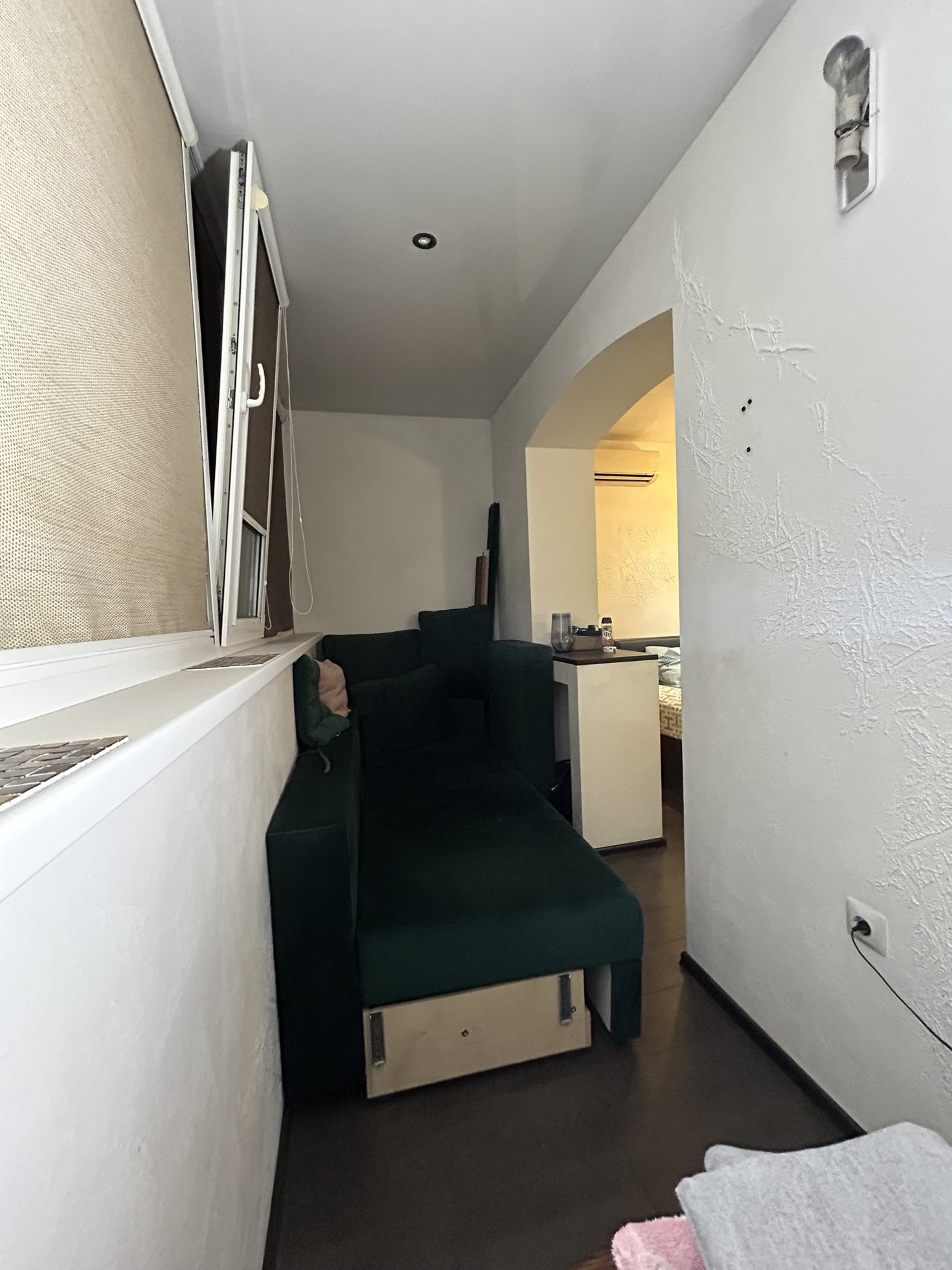 На лоджии можно сделать рабочий кабинет, помещается спальное место.