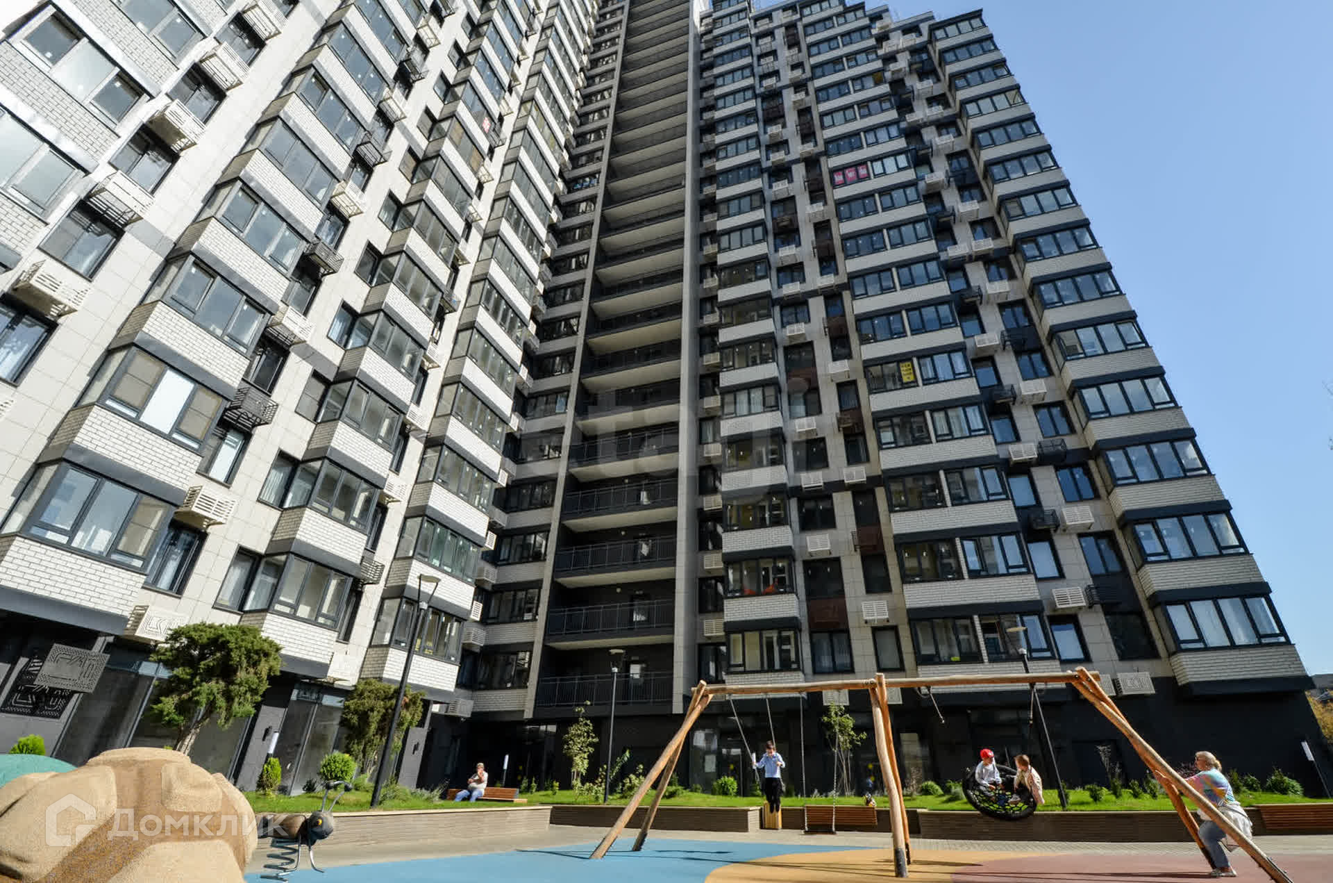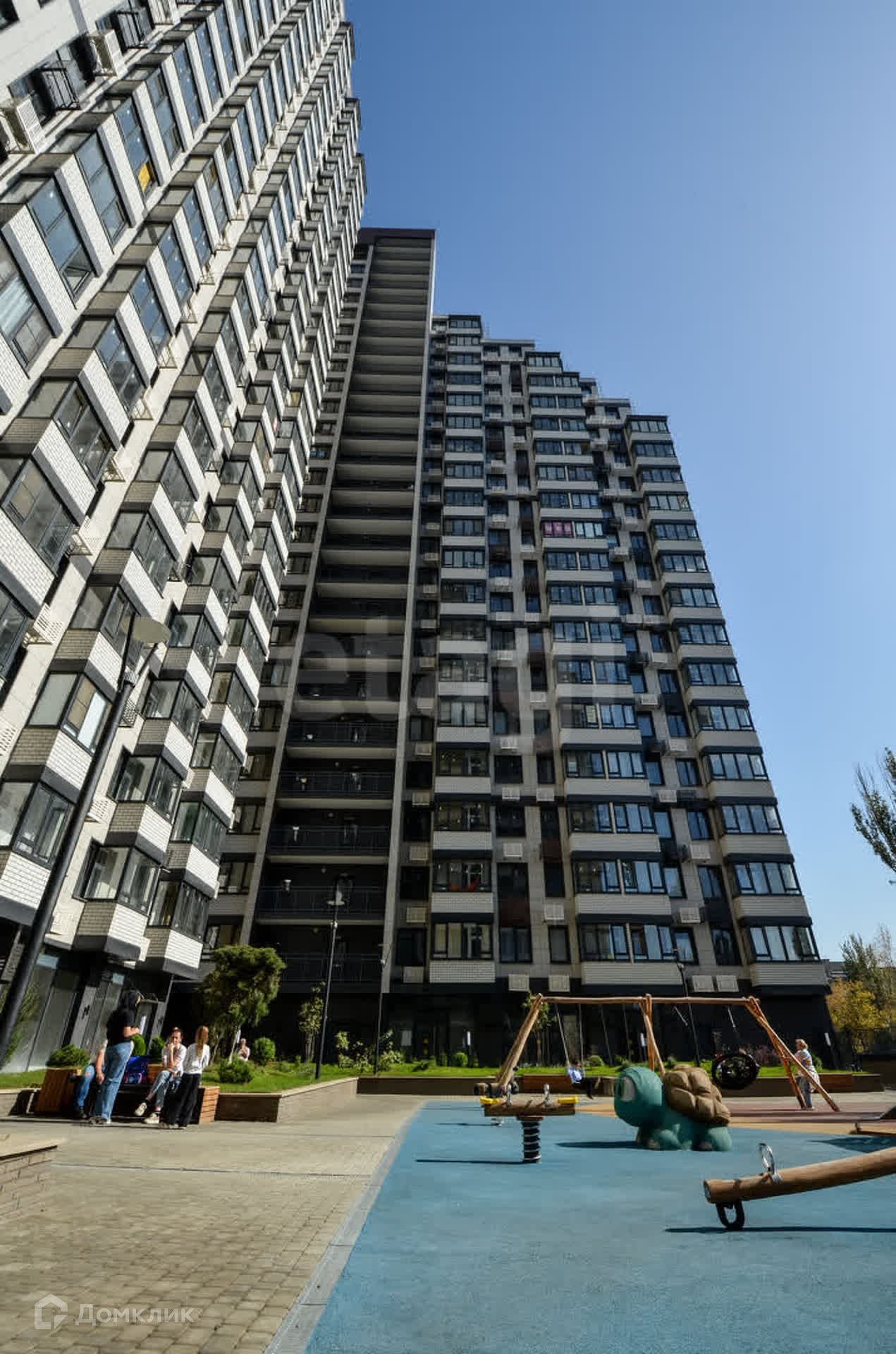 Двор закрытый, без машин, что делает его идеальным местом для отдыха с детьми: здесь расположены детская площадка, скамейки и зелёная зона для прогулок.