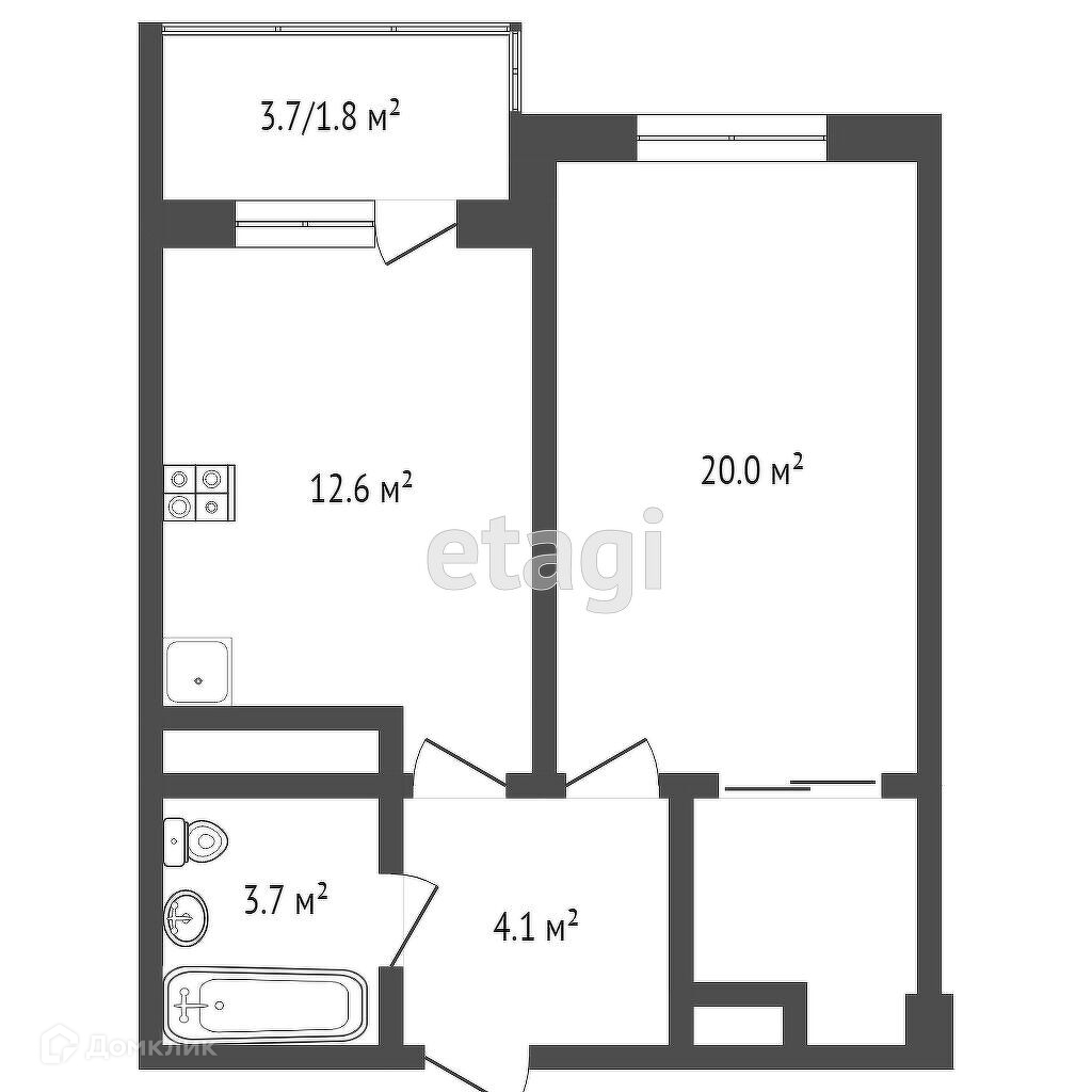 Балкон, лоджия 1 балкон