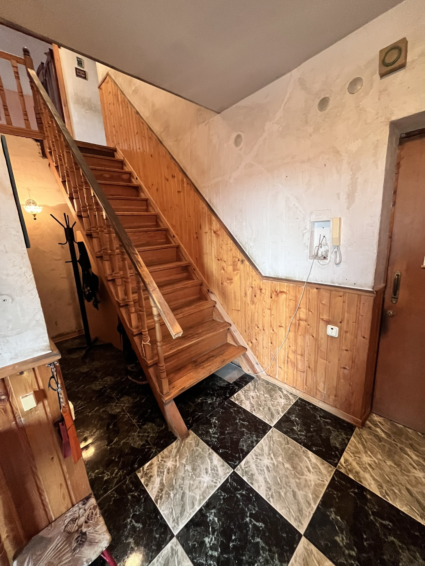 На 1 этаже кухня с балконом, с/у, просторная прихожая и огромное пространство для хранения под лестницей.