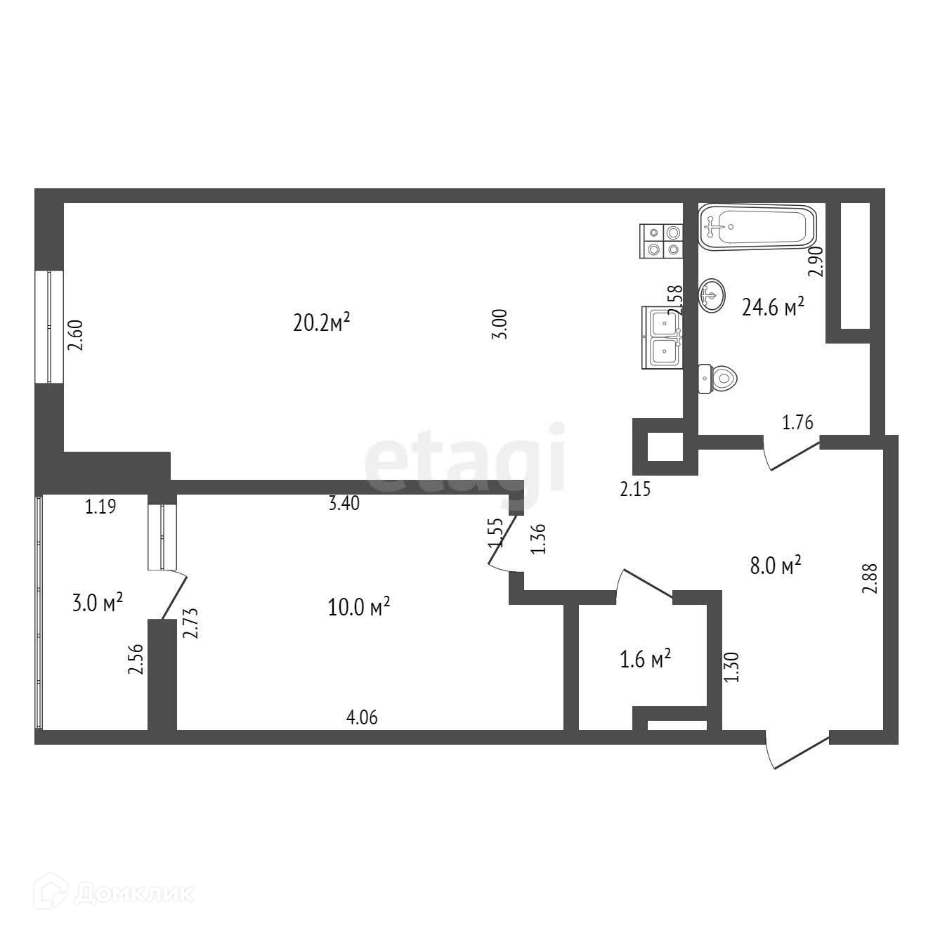 Балкон, лоджия 1 балкон