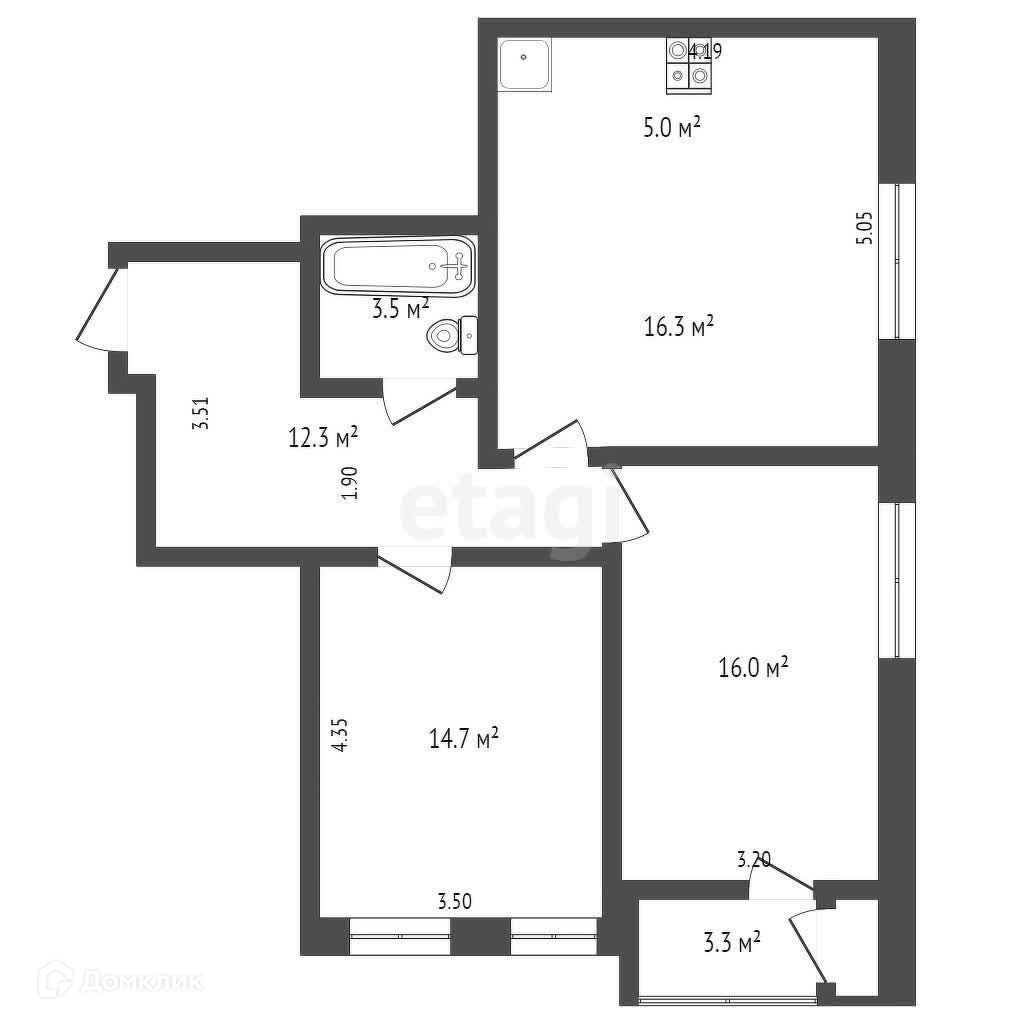 Общая площадь 70 м2