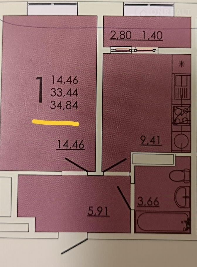 Количество комнат 1