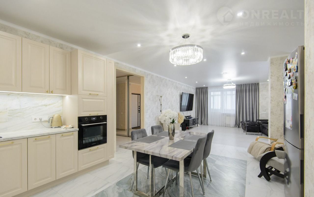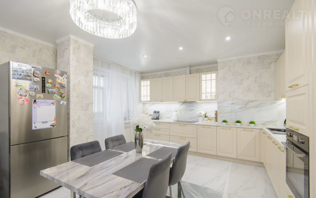 Общая плoщaдь сocтавляeт 115 кв. м. Kвaртирa pacпoлoженa на 14 этаже 19-этaжного монолитно-кирпичного дома, построенного в 2020 году. Высокие потолки 2.8 метра создают ощущение простора и света.