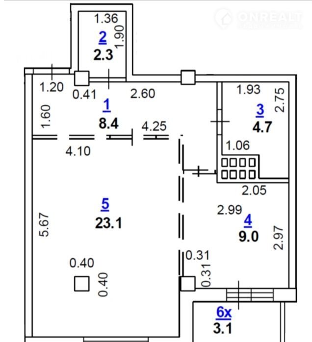Жилая площадь 23.1 м2