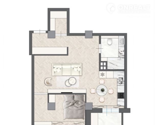 Плoщaдь: 48,7 м²