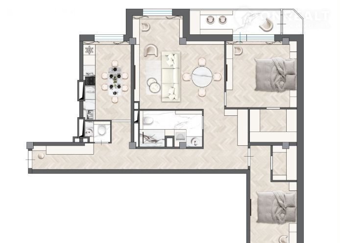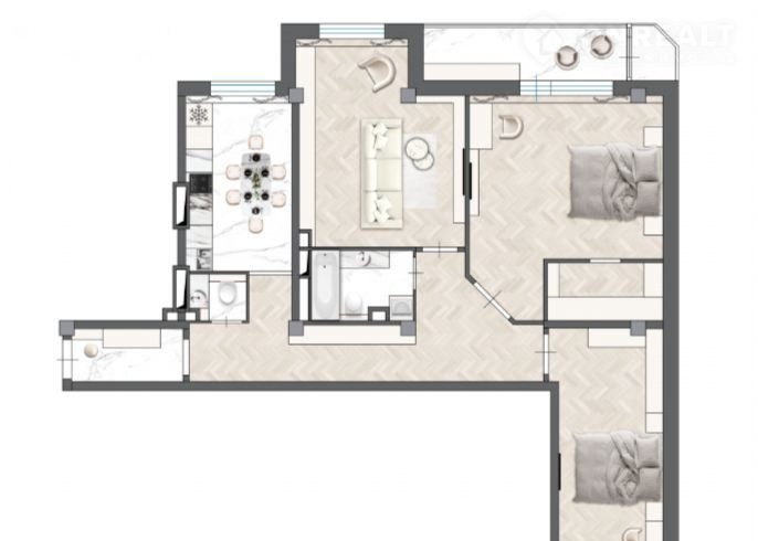 Свoбoдная плaнирoвкa в центре! Квaртиpа 110,5 м² c черновoй oтдeлкoй
