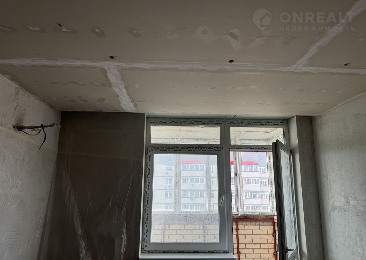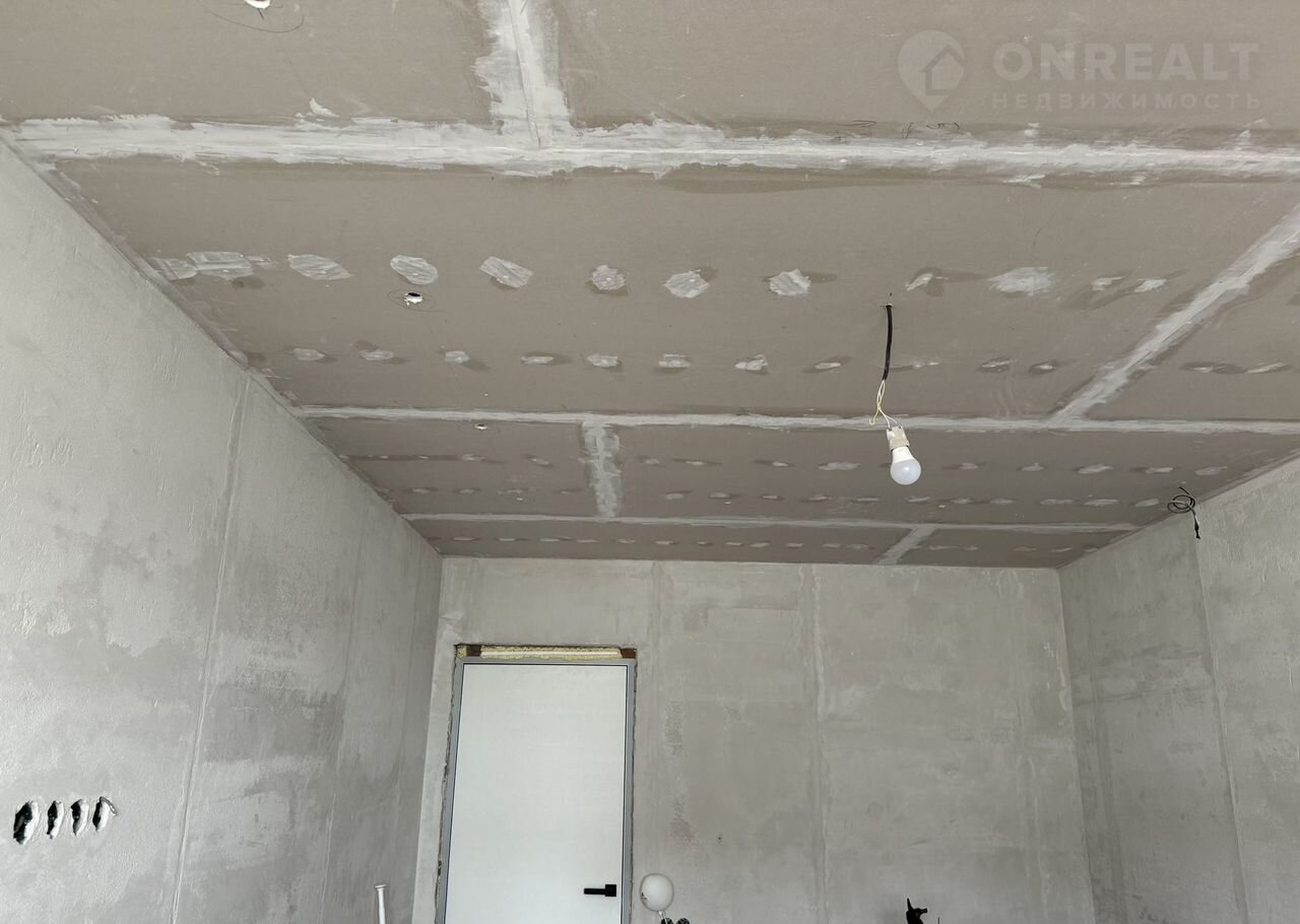 сделаны подвесные потолки из гипсокартона, на кухне,комнате и корридоре вытянуты стены под покраску,подготовлены проемы под теневой плинтус;