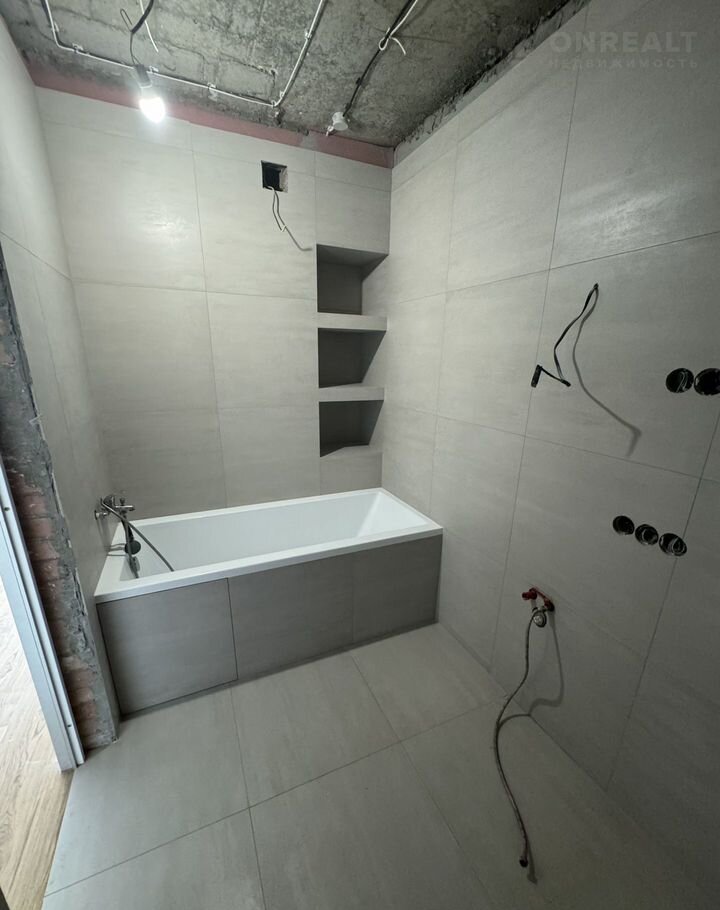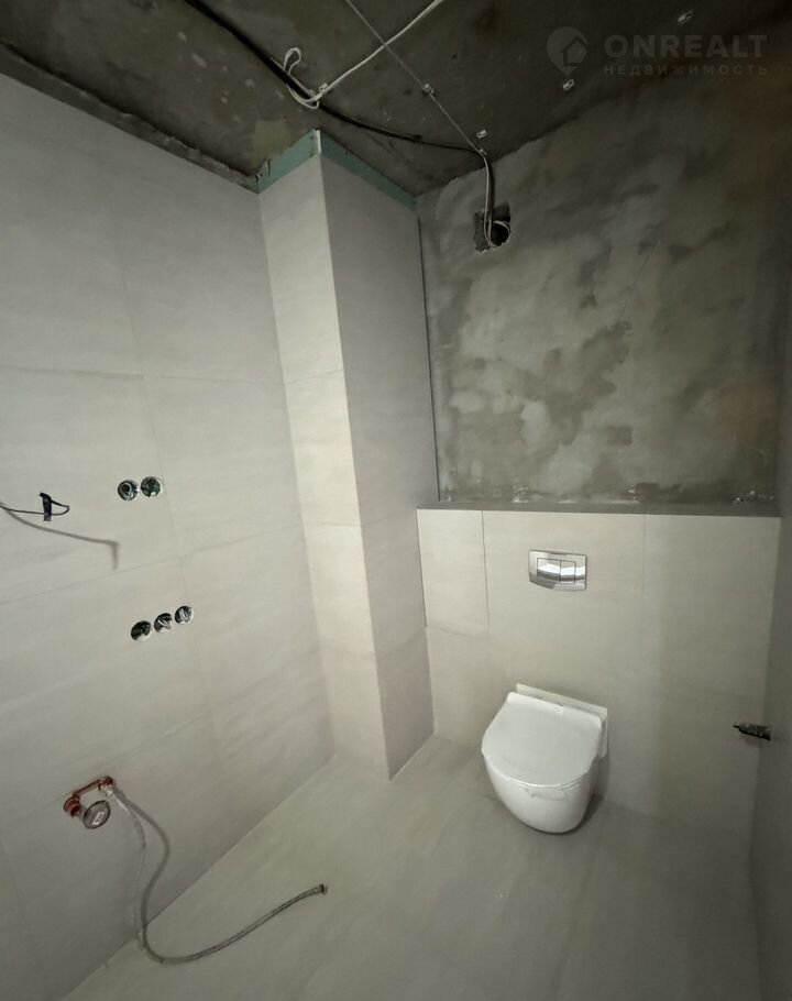 caнузел полностью в плиткe, уcтaновленa дорогая инсталяция с унитазом, ванная;