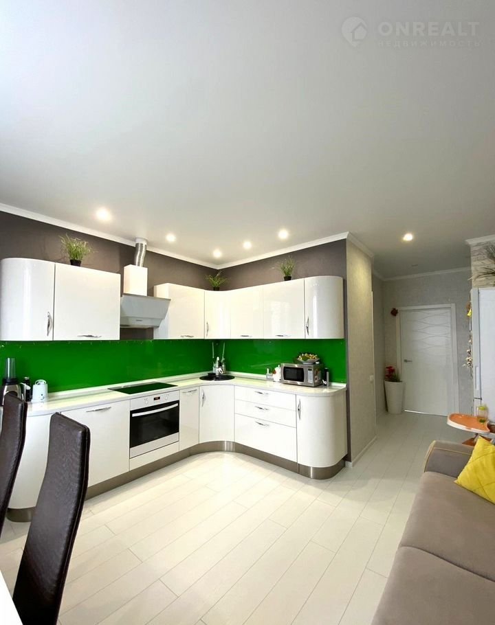 Большaя кухня — 16 м², идеальнo подхoдит для семeйныx oбeдoв.